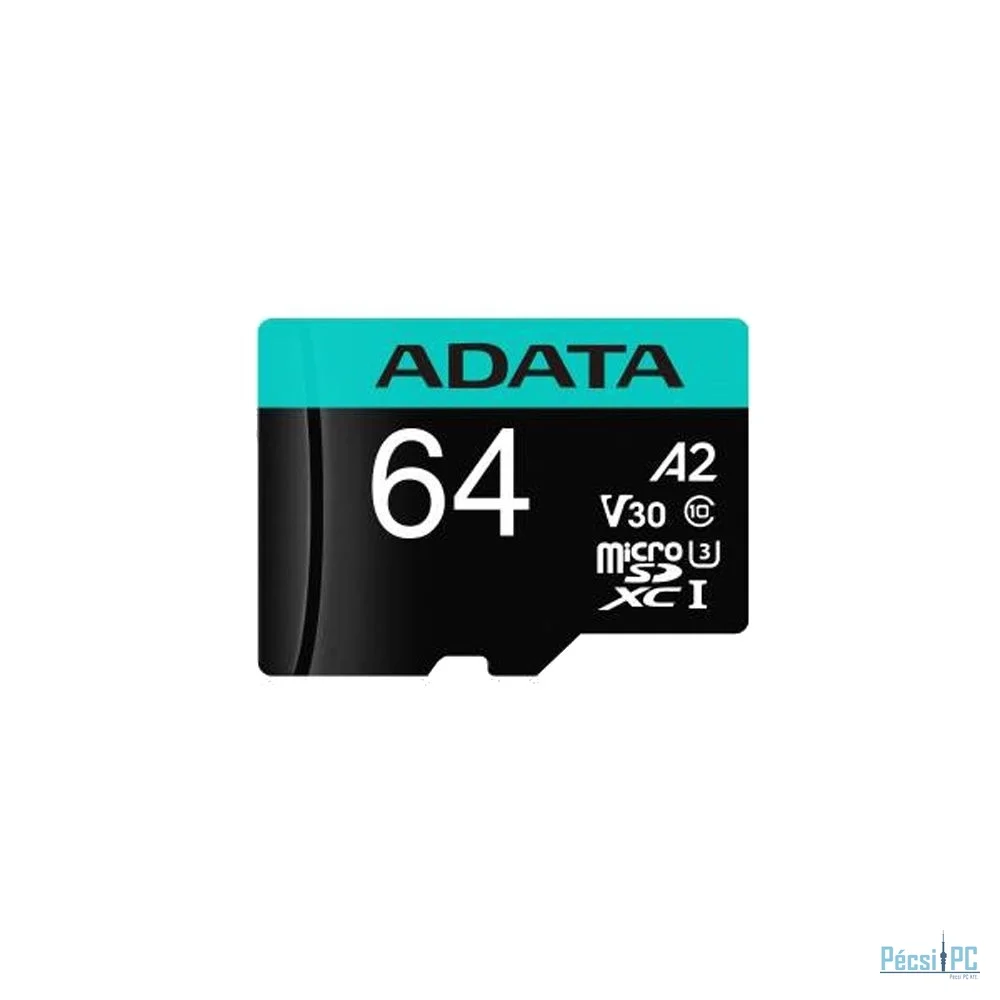 A-Data 64GB microSDXC Premier Pro Class 10 UHS-I U3 A2 V30 + adapterrel