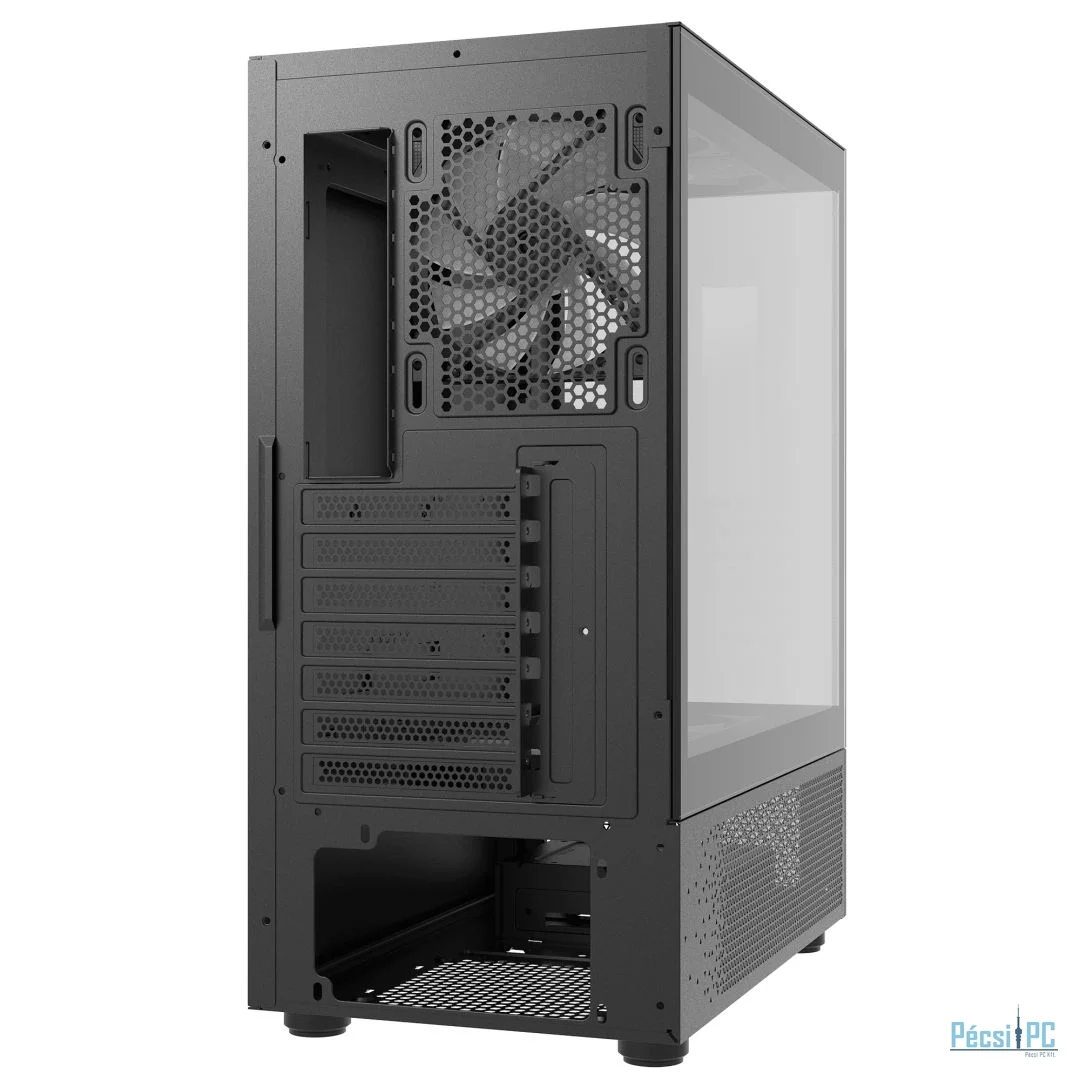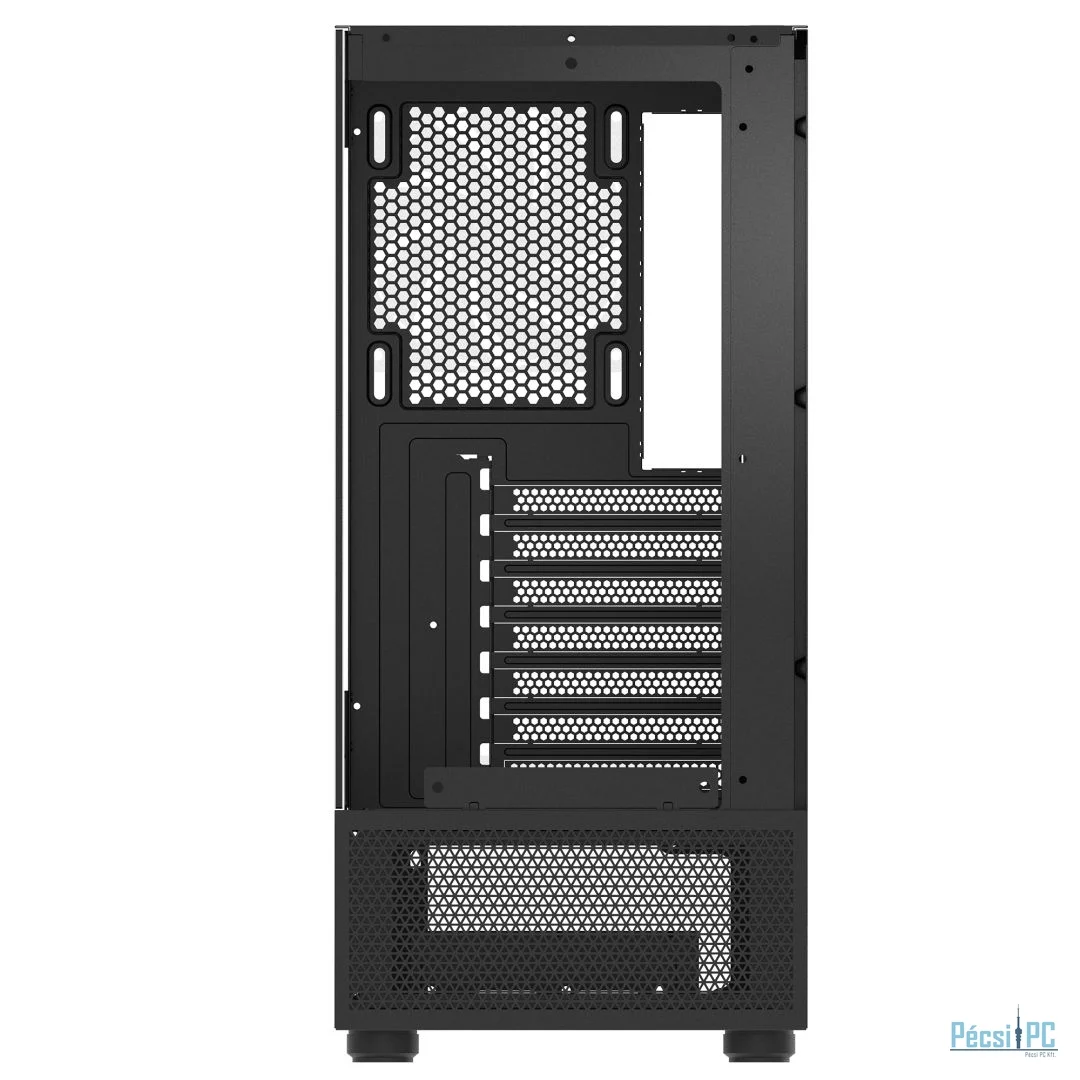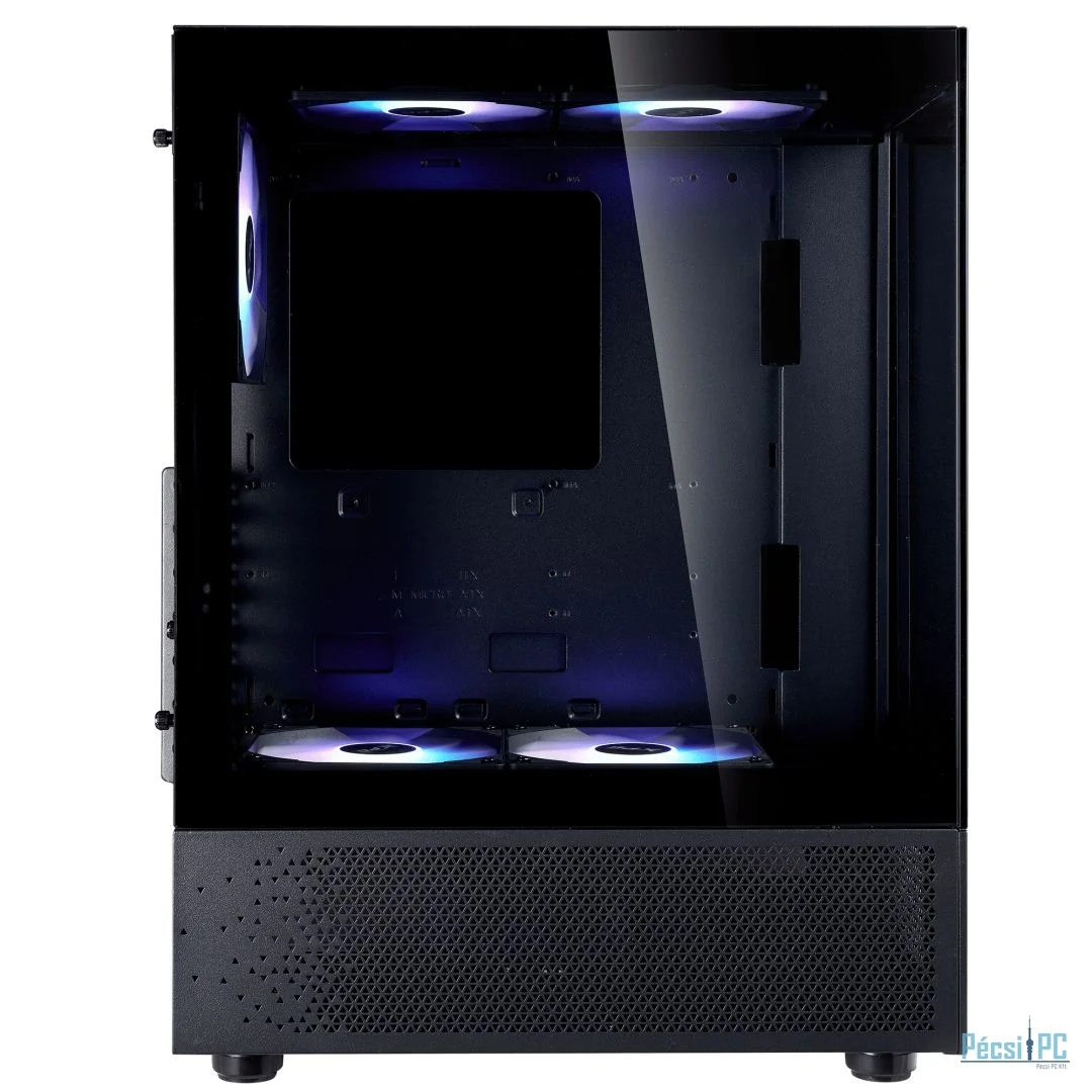 ATX, Black, 2x3,5", 1x2,5", 1xUSB3.2, 1xUSB Type-C, Audio, Táp nélkül, 460x359x210mm, Ventilátor:5x12cm, Tempered glass window, RGB, Gamer
