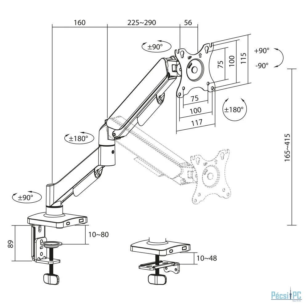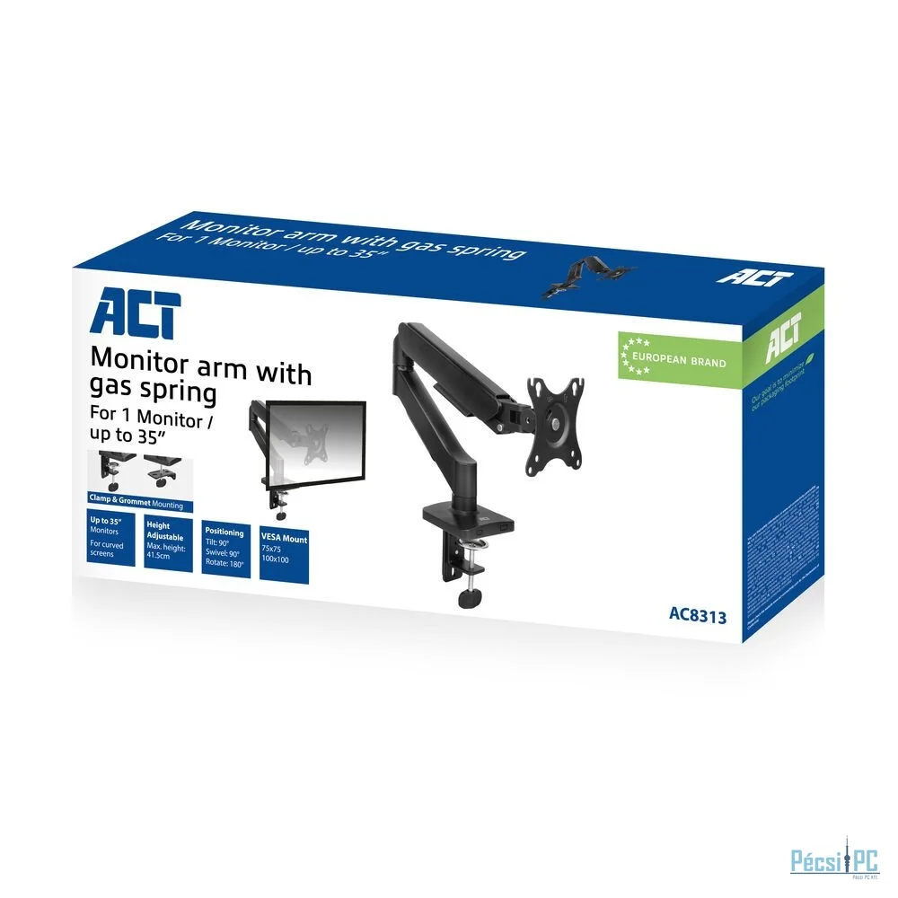 ACT AC8313 Gas Spring Single Monitor Arm 17"-35" Black