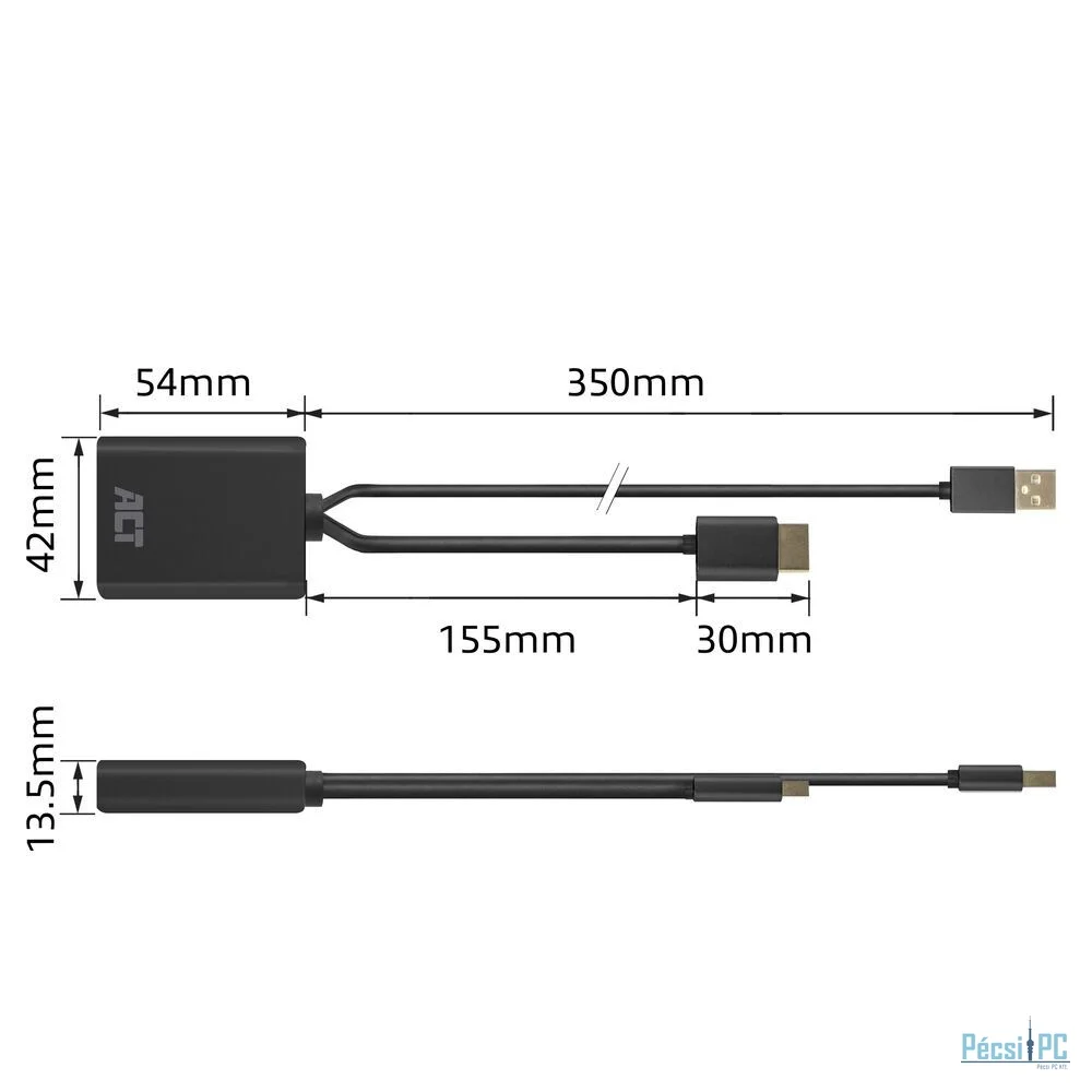 Az ACT AC7536 HDMI-DisplayPort adapter HDMI-rol DisplayPortra csatlakoztatja a HDMI-vel rendelkezo laptopját egy DisplayPort-tal rendelkezo képernyohöz. Akár 3840x2160 (4K) @60Hz felbontás támogatásával. További tápellátás biztosításához csatlakoztatott USB-A tápkábellel rendelkezik. Támogatja az EDID és a hot-plug felismerést, biztosítva a plug-and-play funkcionalitást.