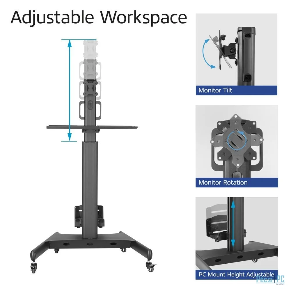 - Mobile computer cart for one monitor, with CPU mount, keyboard and mouse tray