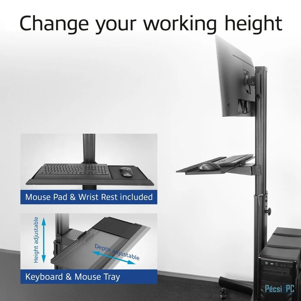 - Mobil munkaállomás zárható görgőkkel egyetlen monitorhoz, CPU-hoz, billentyűzethez és egérhez