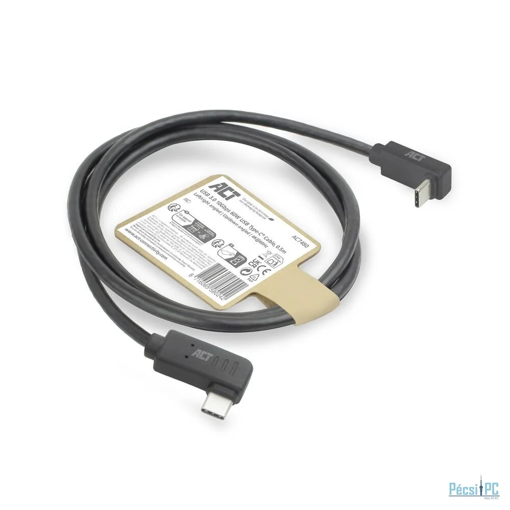 Az USB 3.0 Type-C® kábel sokoldalú megoldás USB-C eszközök csatlakoztatásához, kényelmesebb használatot biztosító szögletes csatlakozóval. A maximális adatátviteli sebesség 10 Gbps, így a kábel ideális gyors és megbízható adatátvitelhez. Az USB-C kábel egy 90°-os balra/jobbra hajlított csatlakozóval és egy 90°-os felfelé/lefelé hajlított csatlakozóval rendelkezik, így rugalmasságot biztosít különböző csatlakozási helyzetekben. A kábel támogatja a 60 W-os tápellátást és a DisplayPort Alternate módot, maximális felbontása 4K@60Hz.