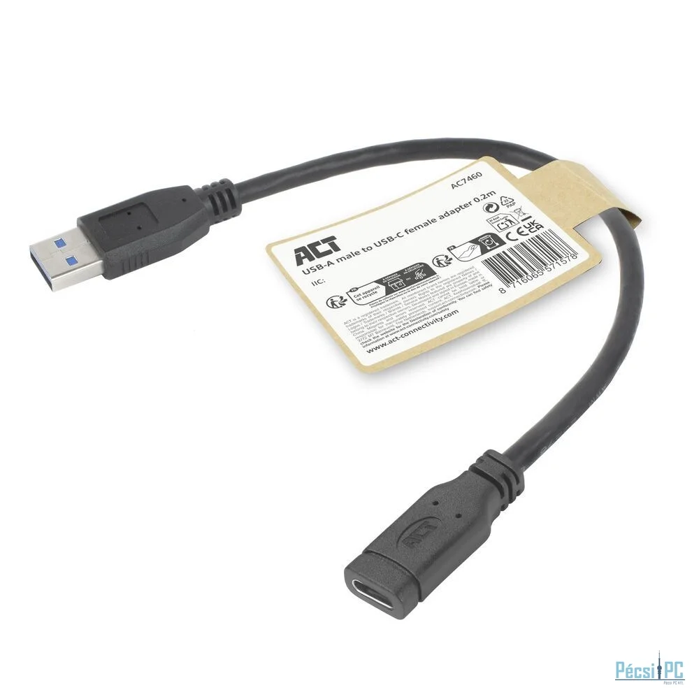 ACT USB Type-A male to USB Type-C female adapter cable 0,2m Black