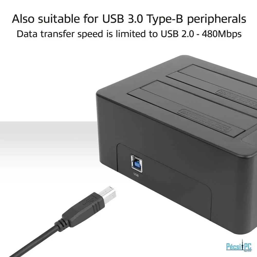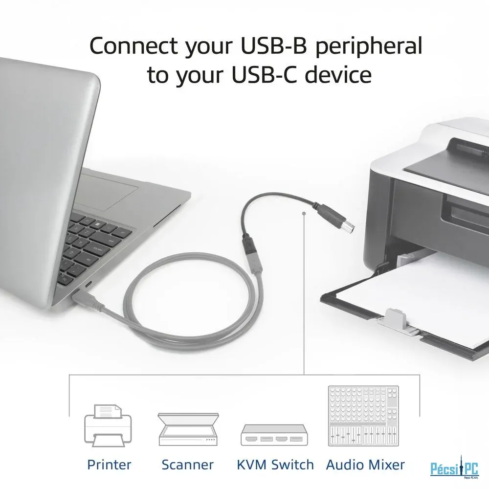 USB kábel, USB-C, USB-B, USB2.0, Male/Female, 0,2m, Black, Adatkábel