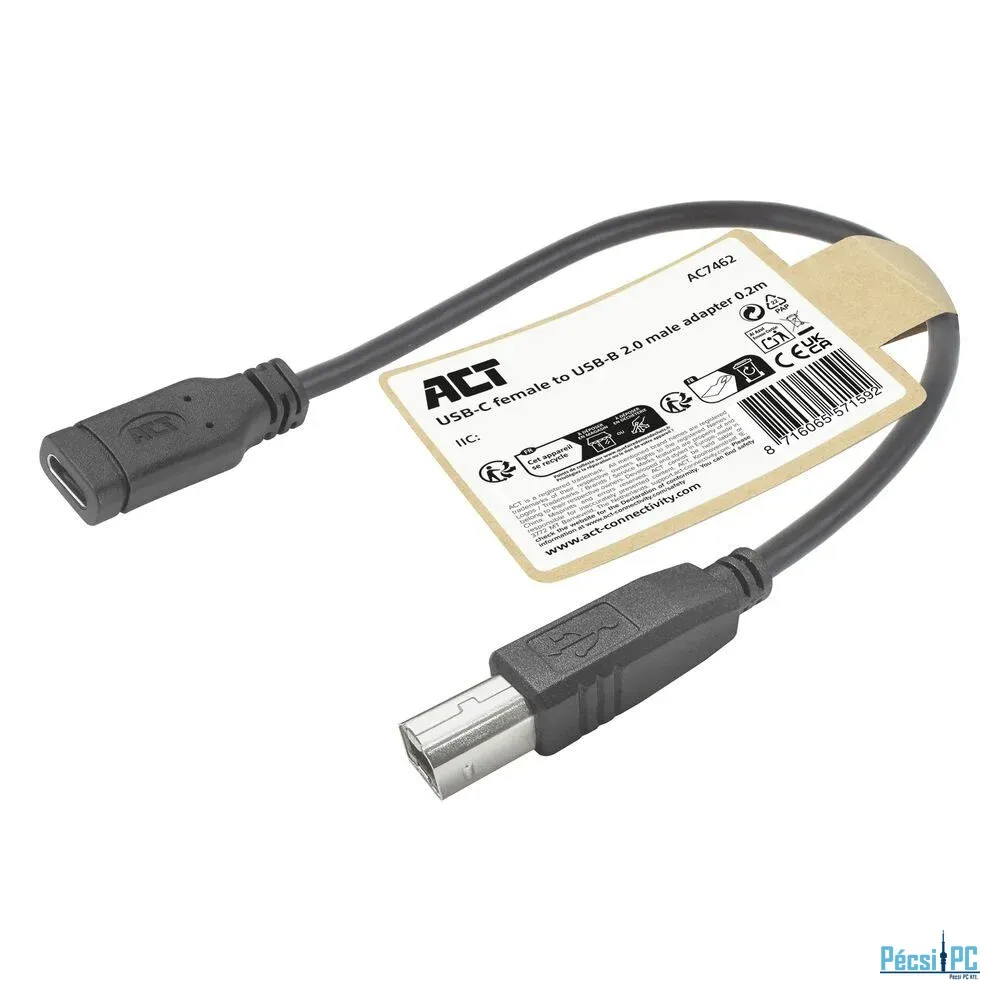 ACT USB Type-C female to USB-B 2.0 printer adapter cable 0,2m Black
