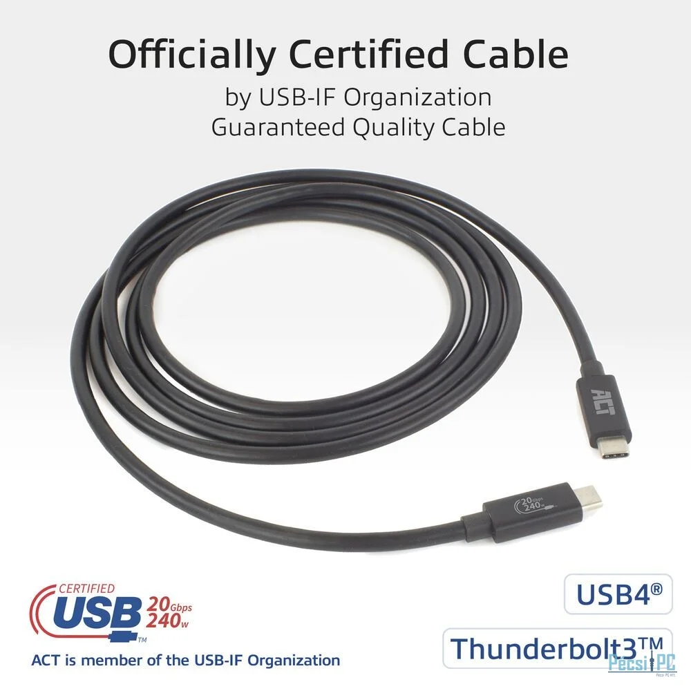USB4® | 20Gbps | USB Type-C® | Thunderbolt™3 | 240W | USB-IF tanúsítvány | 4K@60Hz | 200cm