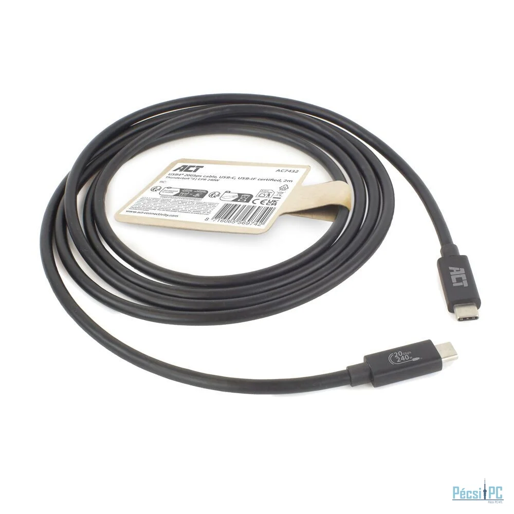 Az AC7432 egy hivatalos USB-IF tanúsítvánnyal rendelkező USB-C kábel, amely támogatja az USB4® protokollt. Az USB4® kábel akár 20 Gbps maximális adatátviteli sebességet is elérhet, és a kiterjesztett teljesítménytartománynak köszönhetően 240 W teljesítményt képes kezelni. Az AC7432 támogatja a 4K@60Hz maximális felbontást. Visszafelé kompatibilis a Thunderbolt™3, USB 3.2, USB 3.1, USB 3.0 és USB 2.0 szabványokkal.