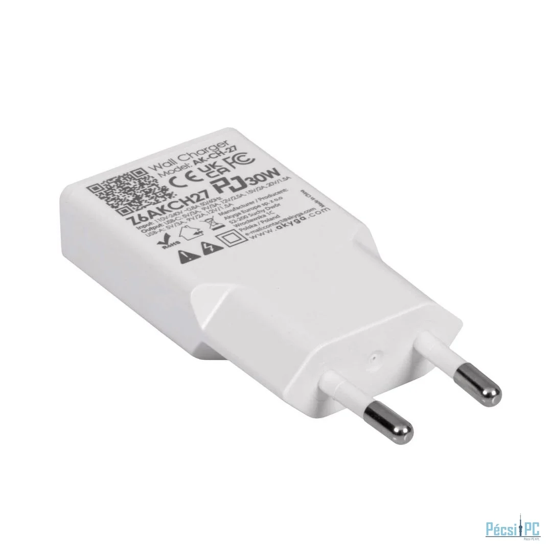 Akyga AK-CH-27 USB-A/USB-C PD 30W Quick Charge 3.0 GaN White