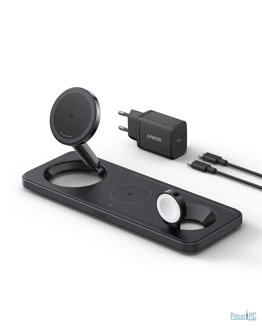 Anker MagGo vezeték nélküli töltőállvány (3 az 1-ben pad), 40 W-os USB-C töltő, 5 láb (1,5 m) USB-C-USB-C kábel, üdvözlő útmutató