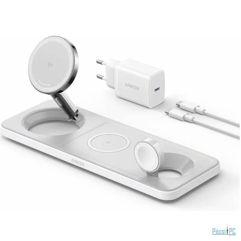 Anker MagGo vezeték nélküli töltőállvány (3 az 1-ben pad), 40 W-os USB-C töltő, 5 láb (1,5 m) USB-C-USB-C kábel, üdvözlő útmutató