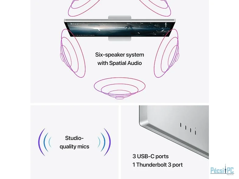 16:9, 5120x2880, 27", 5K, LED, 60Hz, 600cd/m2, 3xUSB-C, 1xThunderbolt, Hangszóró, Silver, Állítható magasság, WEBCAM
