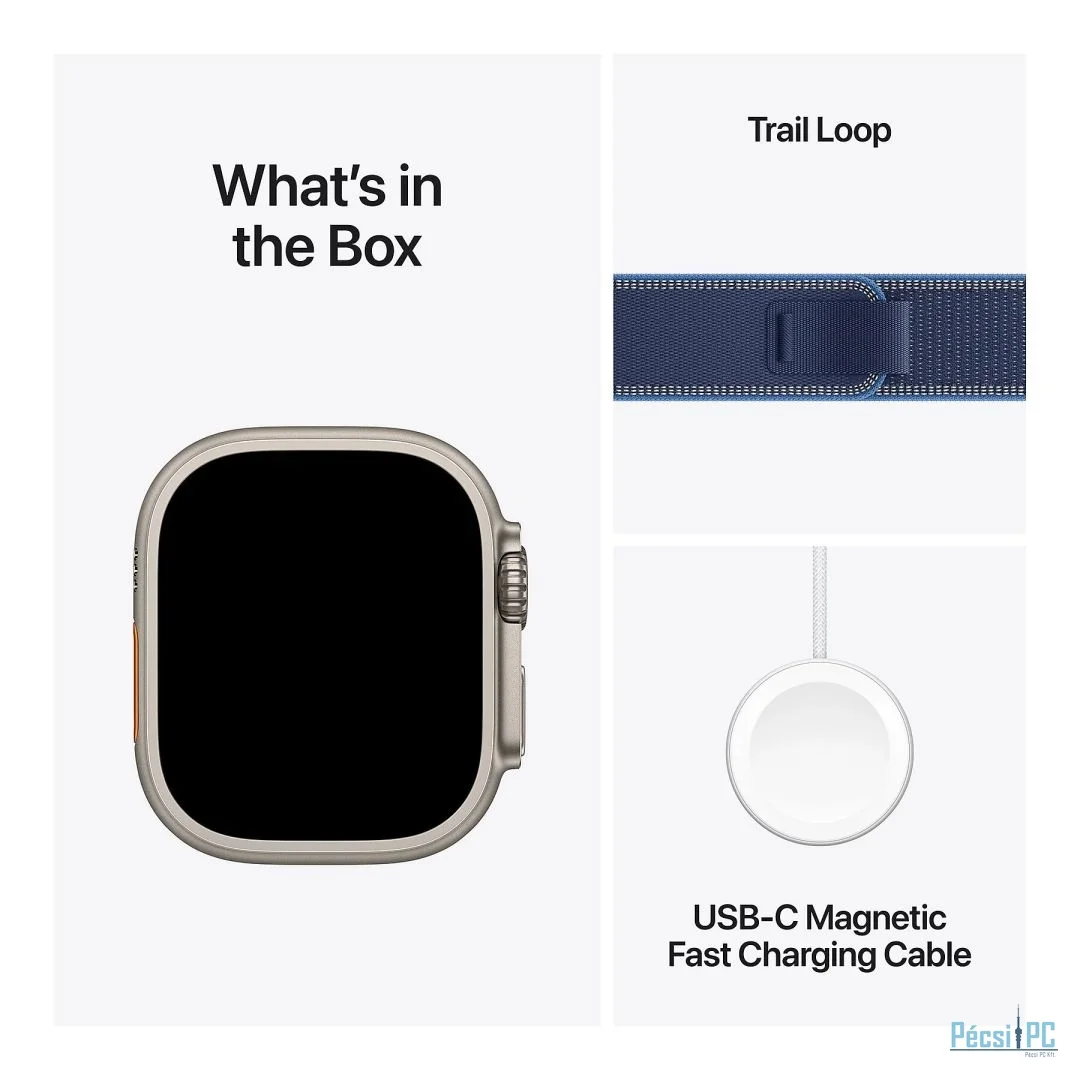 Kijelző mérete: 1,98", iOS, <2 nap, Vízálló, 10 ATM, Wi-Fi, Bluetooth, GPS, Gyroscope, NFC, Pulzusmérő, Gyorsulásmérő, Üzenet és hívás kezelése, Mikrofon, Alvás figyelés, Magasságmérő, Elégetett kalória kijelzés, Zene vezérlése, Tok mérete: 49x44x12mm