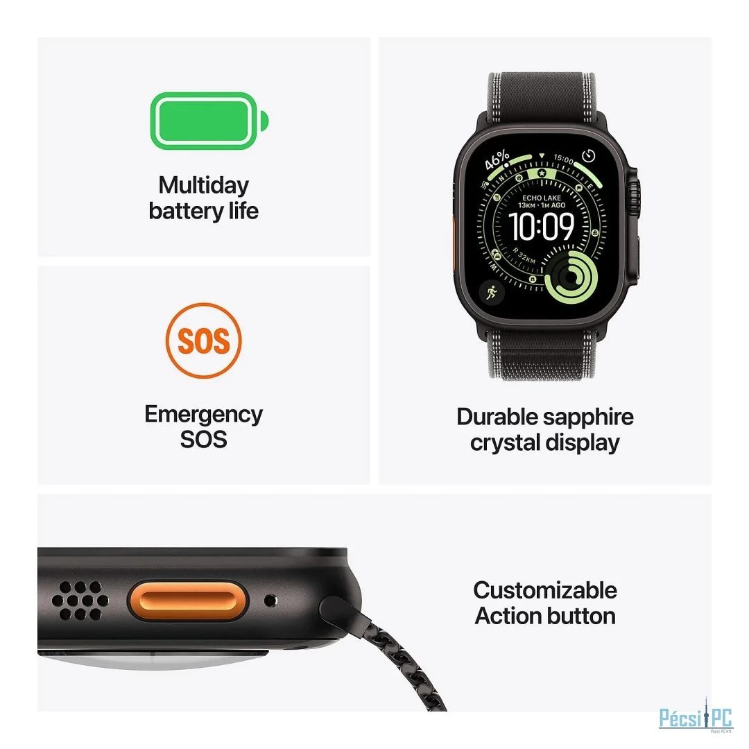 Az Apple Watch Ultra 3 a multitasking nagymestere egy sportóra és egy okosóra szuperképességeivel. Az üzleti megbeszélésről egyből mehetsz vele bokszedzésre vagy búvárkodni, majd tovább egy elegáns vacsorára – gördülékenyen alkalmazkodik hozzád. Hívásokat fogadhatsz, válaszolhatsz az üzeneteidre, zenét streamelhetsz, és fizetésre is használhatod. Mindeközben rögzíti az egészségeddel kapcsolatos adatokat, és szükség esetén hasznos biztonsági funkciók is kéznél vannak. Nem véletlenül hívják Ultrának.