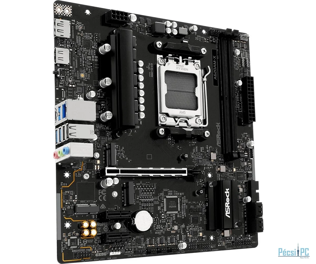 AM5, AMD A620A, 2xDDR5, Max:5600MHz, Max:128GB, 1xPCIE16, 2xPCIE1, 4xSATA3, RAID, 2xUSB, 3xUSB3.2, 1xUSB3.2C, HDMI, DisplayPort, 7.1, 2.5Gb/s LAN, 2xHyper M.2, Micro-ATX