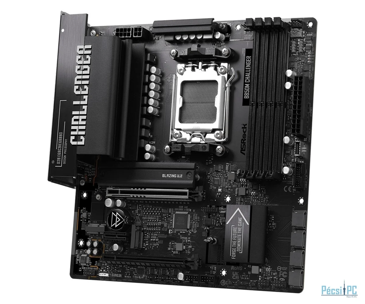 AM5, AMD B850, 4xDDR5, Max:5600MHz, Max:256GB, 2xPCIE16, 1xPCIE4, 4xSATA3, RAID, 2xUSB, 6xUSB3.2, HDMI, 7.1, 2.5Gb/s LAN, 1xHyper M.2, 1xBlazing M.2, Micro-ATX