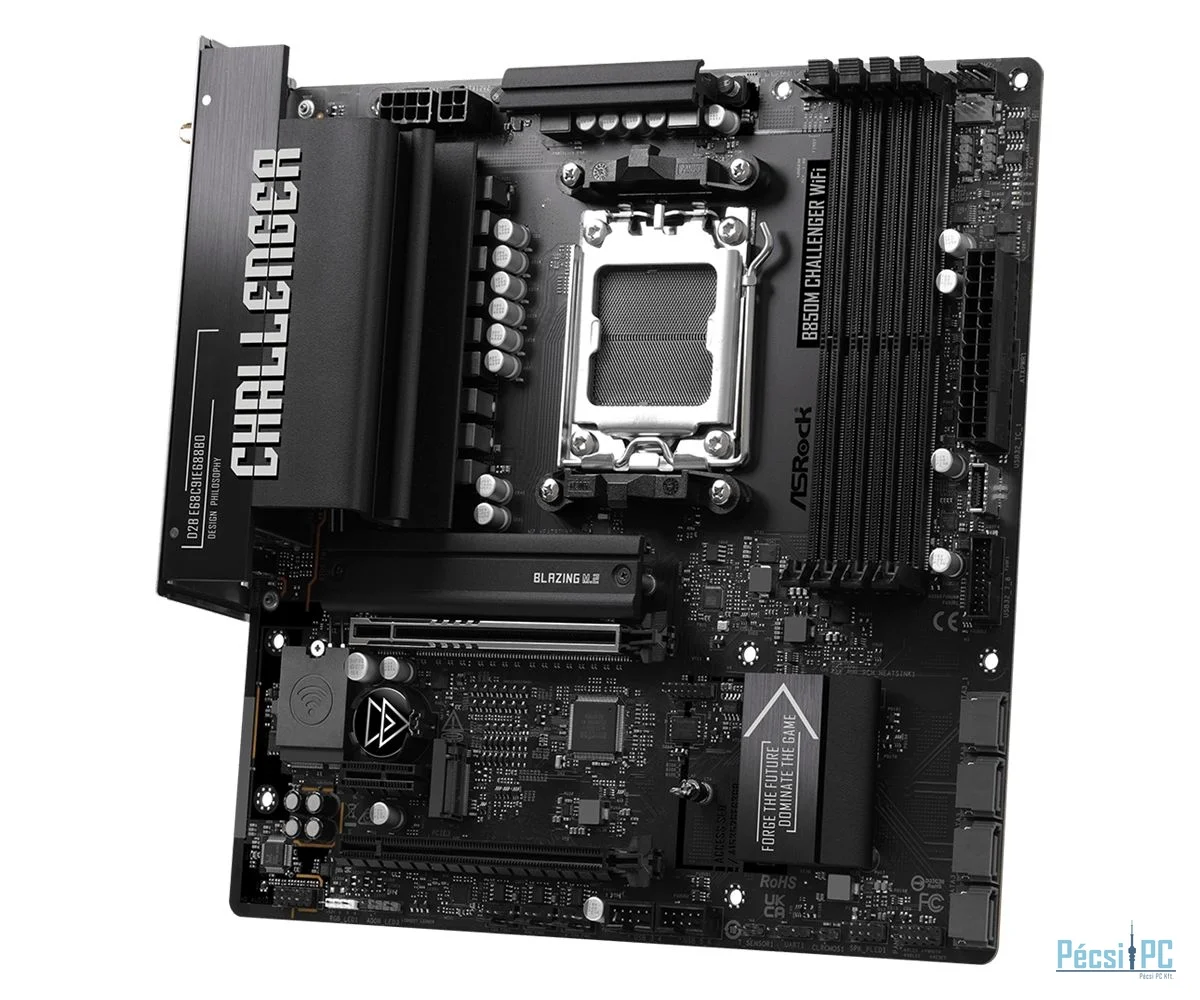 AM5, AMD B850, 4xDDR5, Max:5600MHz, Max:256GB, 2xPCIE16, 1xPCIE1, 4xSATA3, RAID, 2xUSB, 6xUSB3.2, HDMI, 7.1, 2.5Gb/s LAN, WiFi, Bluetooth, 1xHyper M.2, 1xBlazing M.2, Micro-ATX