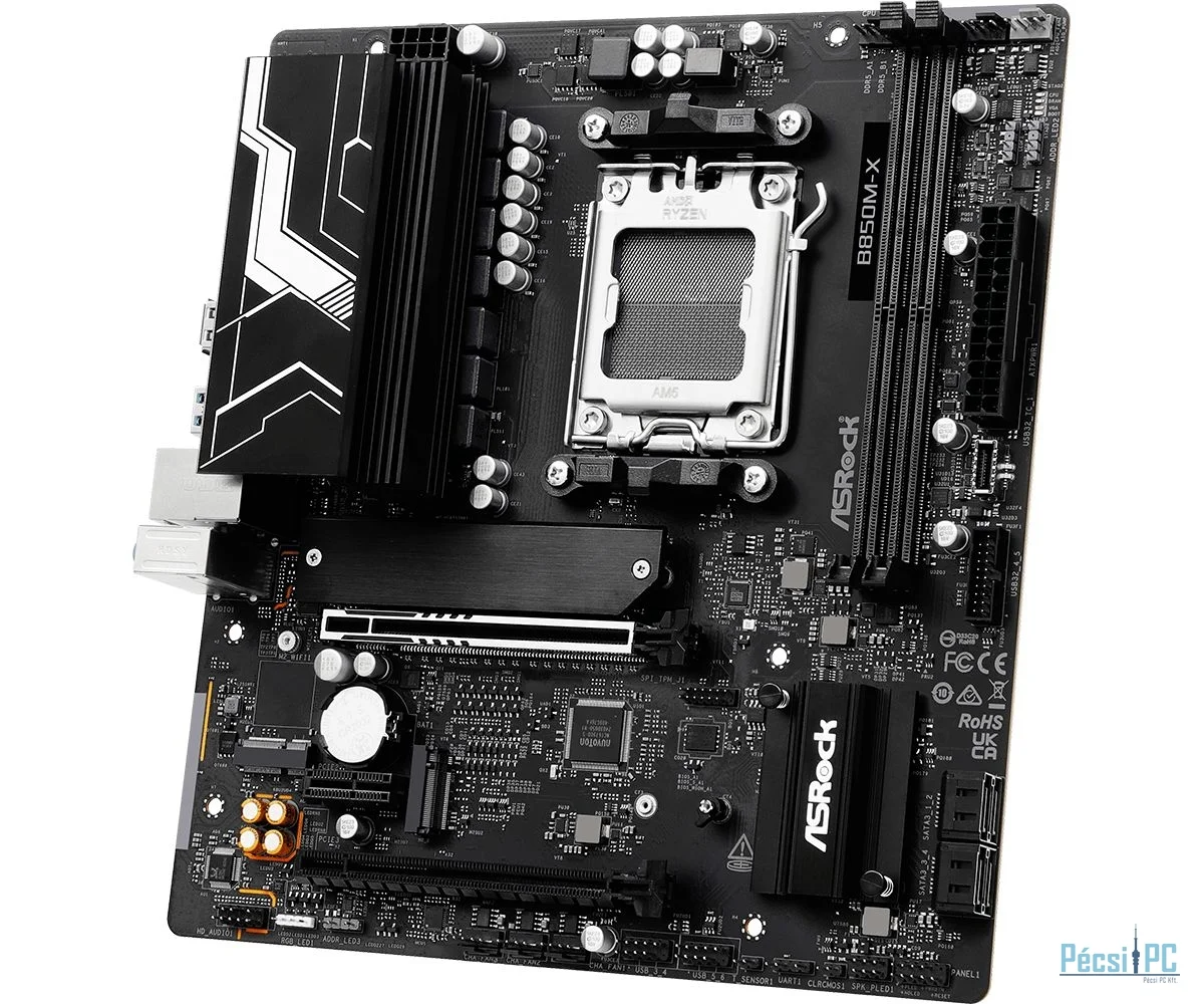 AM5, AMD B850, 2xDDR5, Max:5600MHz, Max:128GB, 2xPCIE16, 1xPCIE1, 4xSATA3, RAID, 2xUSB, 3xUSB3.2, 1xUSB3.2C, HDMI, DisplayPort, 7.1, 2.5Gb/s LAN, 1xHyper M.2, 1xBlazing M.2, Micro-ATX