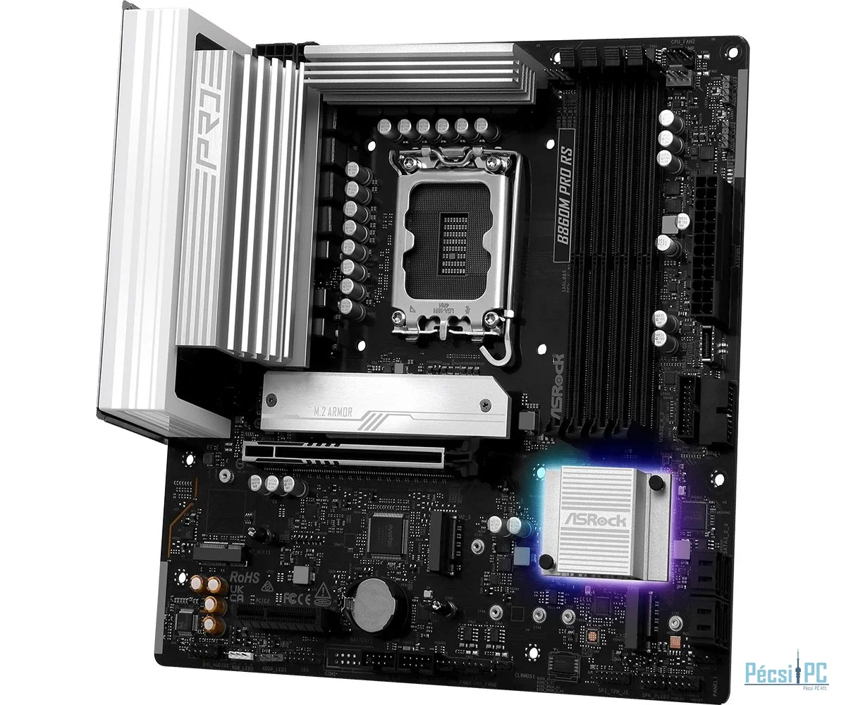 LGA1851, Intel B860, 4xDDR5, Max:5600MHz, Max:256GB, 1xPCIE16, 1xPCIE4, 4xSATA3, RAID, 2xUSB, 3xUSB3.2, 1xUSB4.0C, HDMI, DisplayPort, 7.1, 2.5Gb/s LAN, 2xHyper M.2, 1xBlazing M.2, Micro-ATX, RGB, Gamer