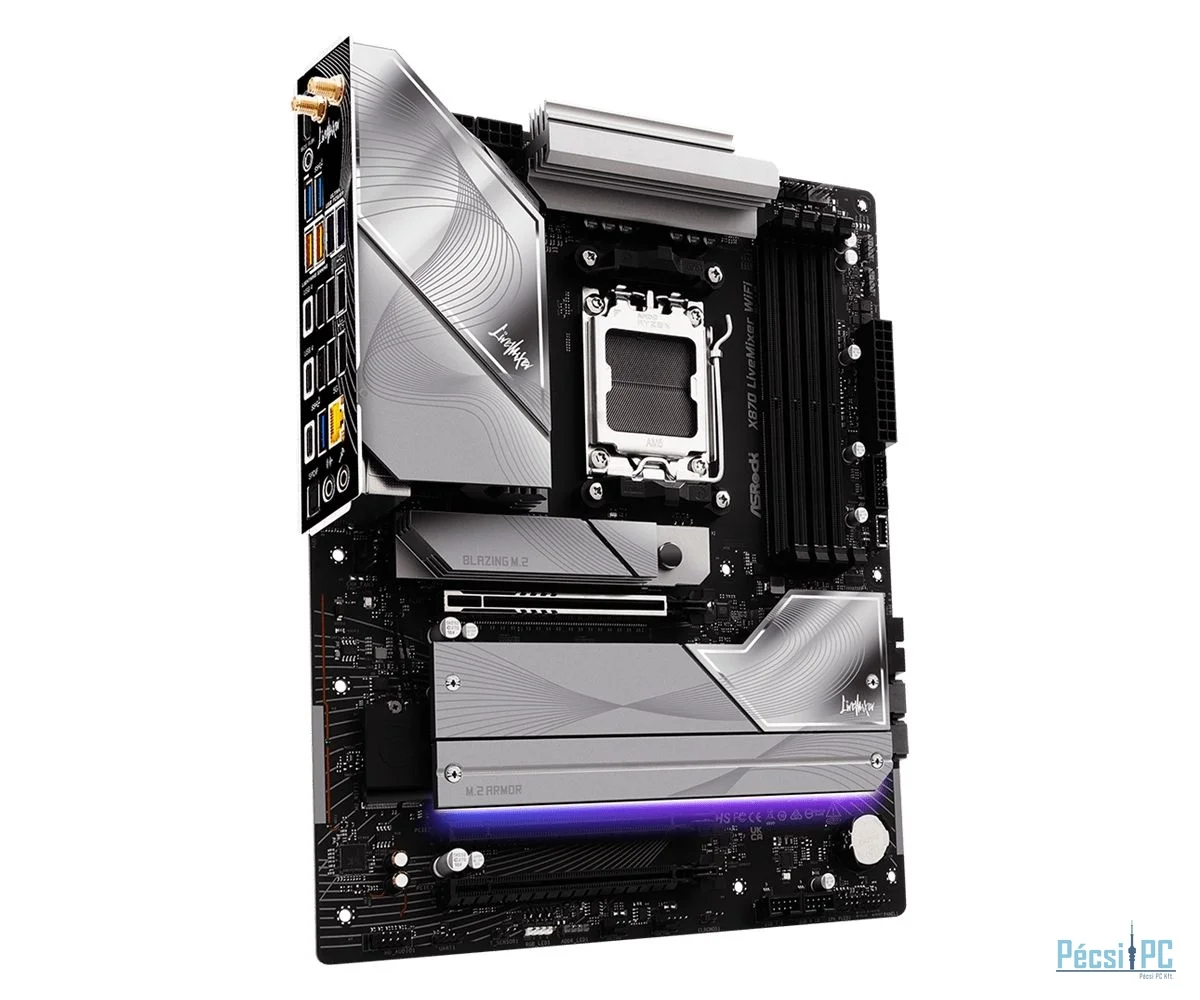 AM5, AMD X870, 4xDDR5, Max:5600MHz, Max:256GB, 3xPCIE16, 2xSATA3, 6xUSB, 7xUSB3.2, 1xUSB3.2C, 2xUSB4.0C, HDMI, 7.1, SPDIF optikai kimenet, 5Gb/s LAN, WiFi, Bluetooth, 2xHyper M.2, 2xBlazing M.2, ATX, RGB, Gamer