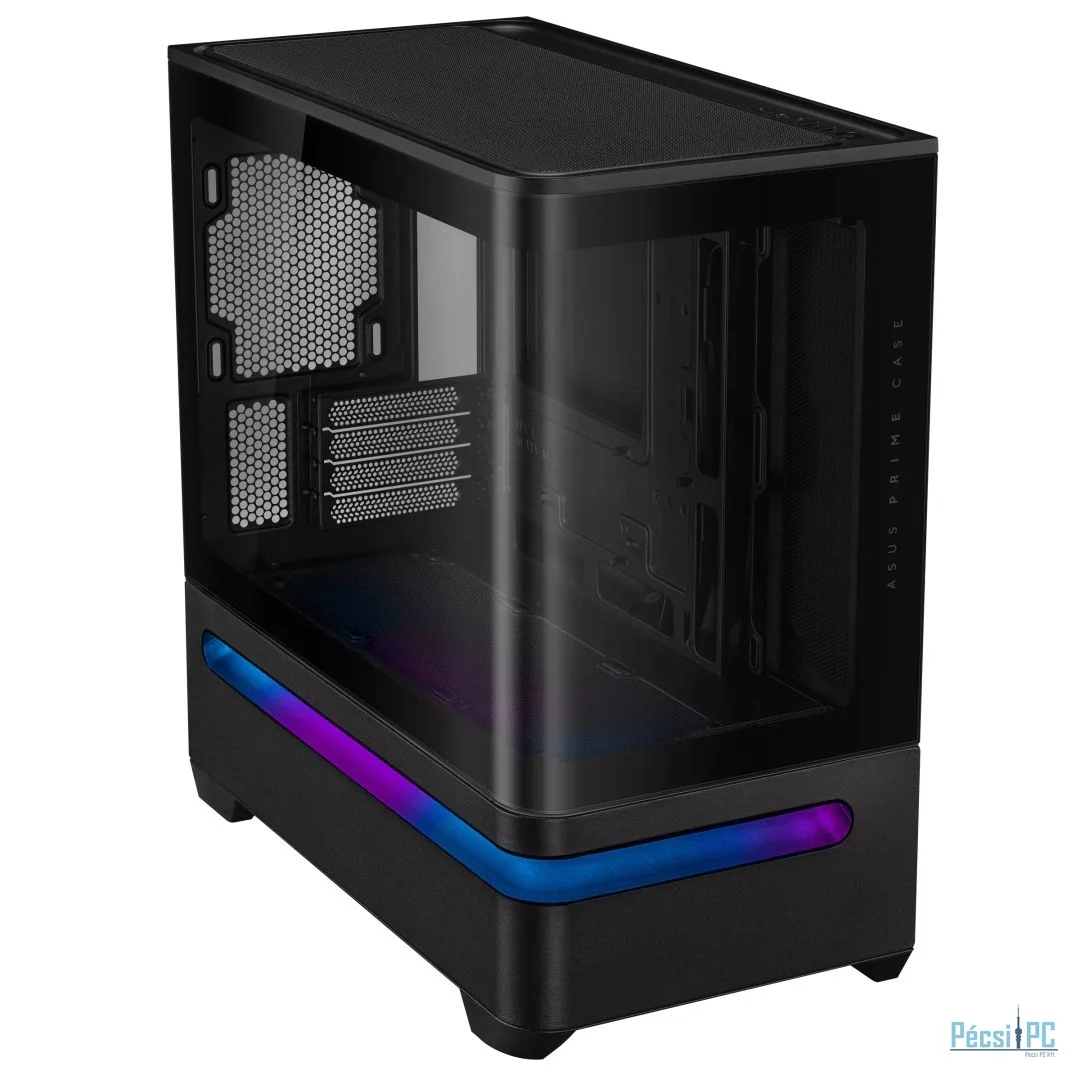 microATX, Black, 2x3,5", 2xUSB3.2, 1xUSB Type-C, Audio, Táp nélkül, 460x441x236mm, Tempered glass window, RGB, Gamer