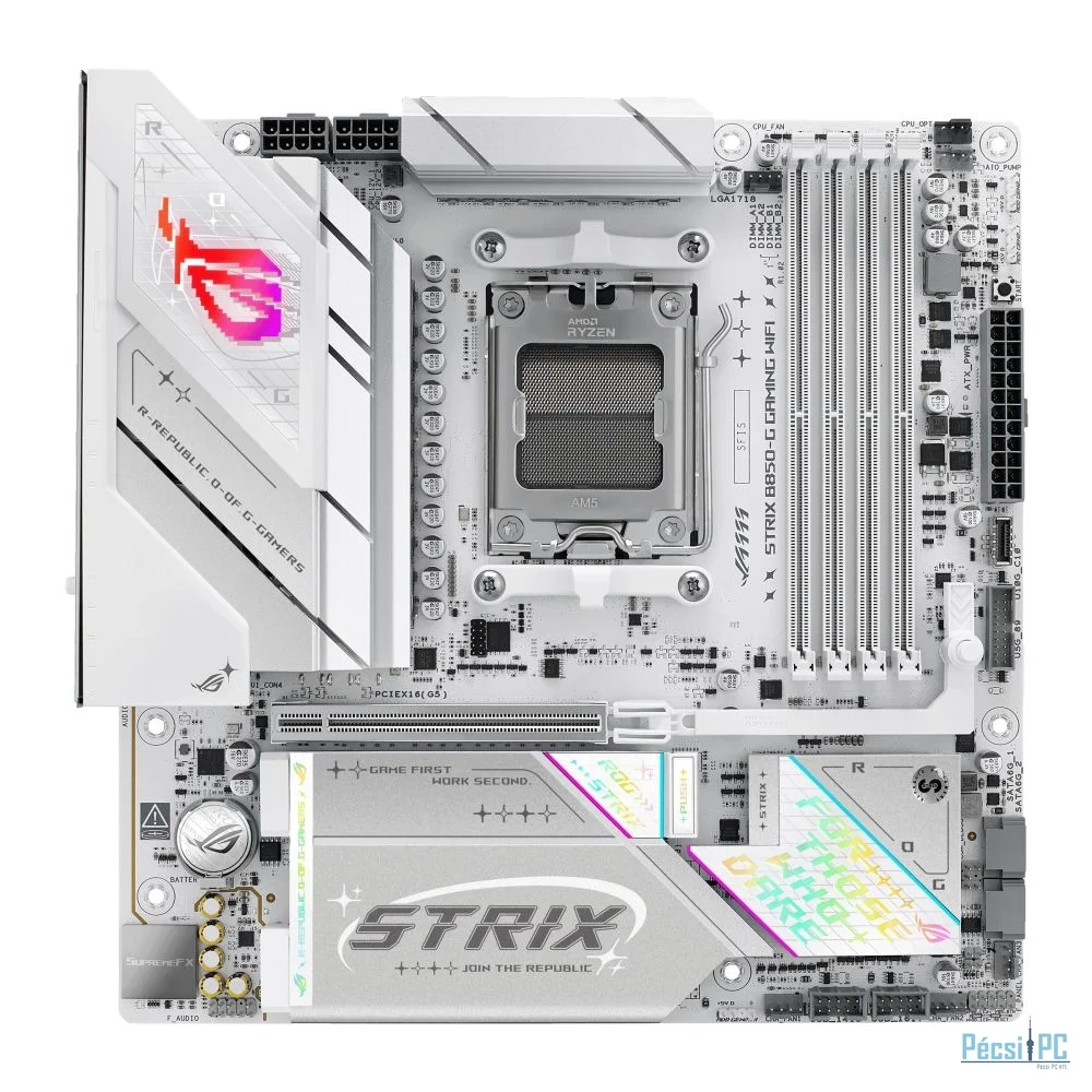 AM5, AMD B850, 4xDDR5, Max:5600MHz, Max:256GB, 2xPCIE16, 2xSATA3, RAID, 2xUSB, 6xUSB3.2, 2xUSB3.2C, HDMI, DisplayPort, 7.1, SPDIF optikai kimenet, 2.5Gb/s LAN, WiFi, Bluetooth, 4xM.2, ATX, RGB, Gamer
