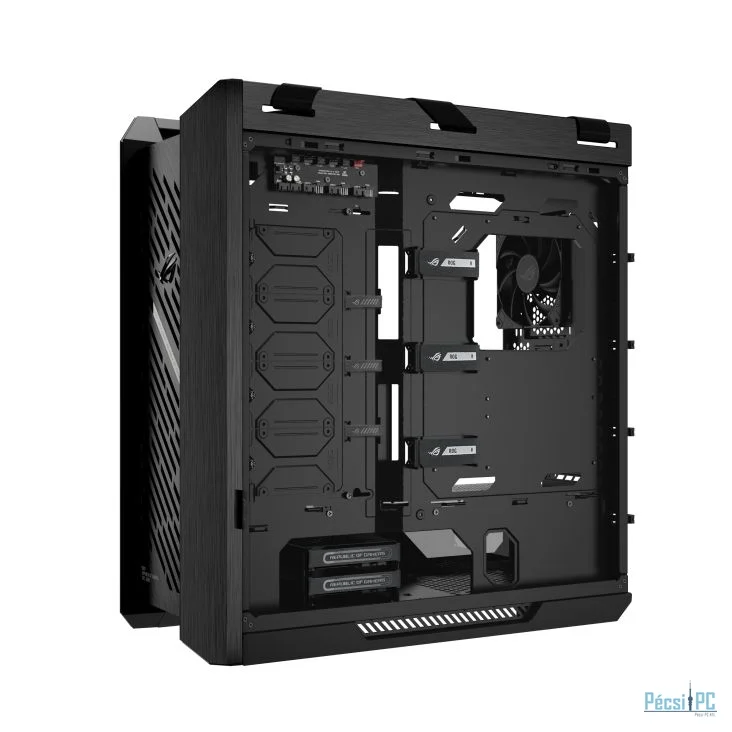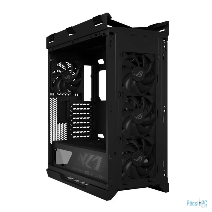 E-ATX, Black, 2x3,5", 4x2,5", 4xUSB3.2, 2xUSB Type-C, Audio, Táp nélkül, 591x565x250mm, Ventilátor:4x14cm, Tempered glass window, Gamer