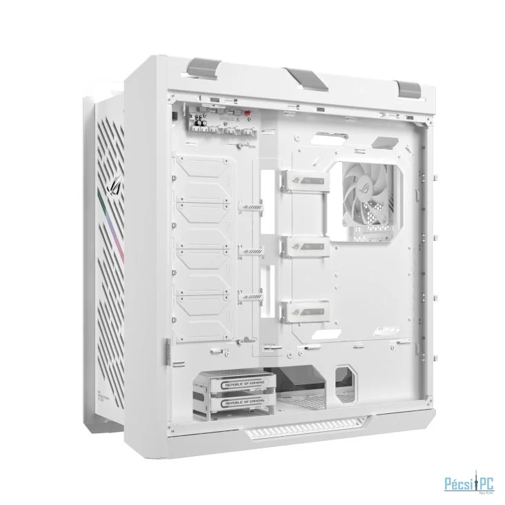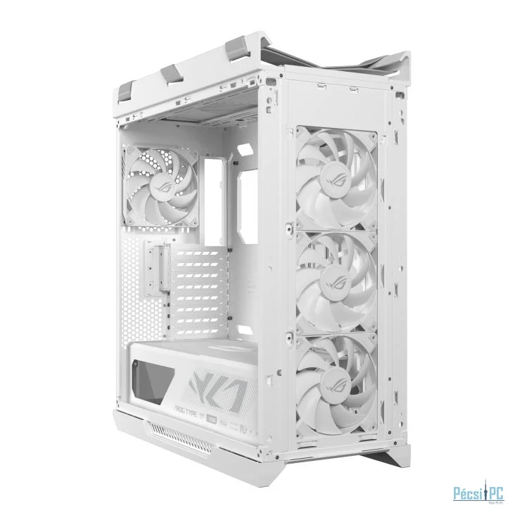 E-ATX, White, 2x3,5", 4x2,5", 4xUSB3.2, 2xUSB Type-C, Audio, Táp nélkül, 591x565x250mm, Ventilátor:4x14cm, Tempered glass window, RGB, Gamer