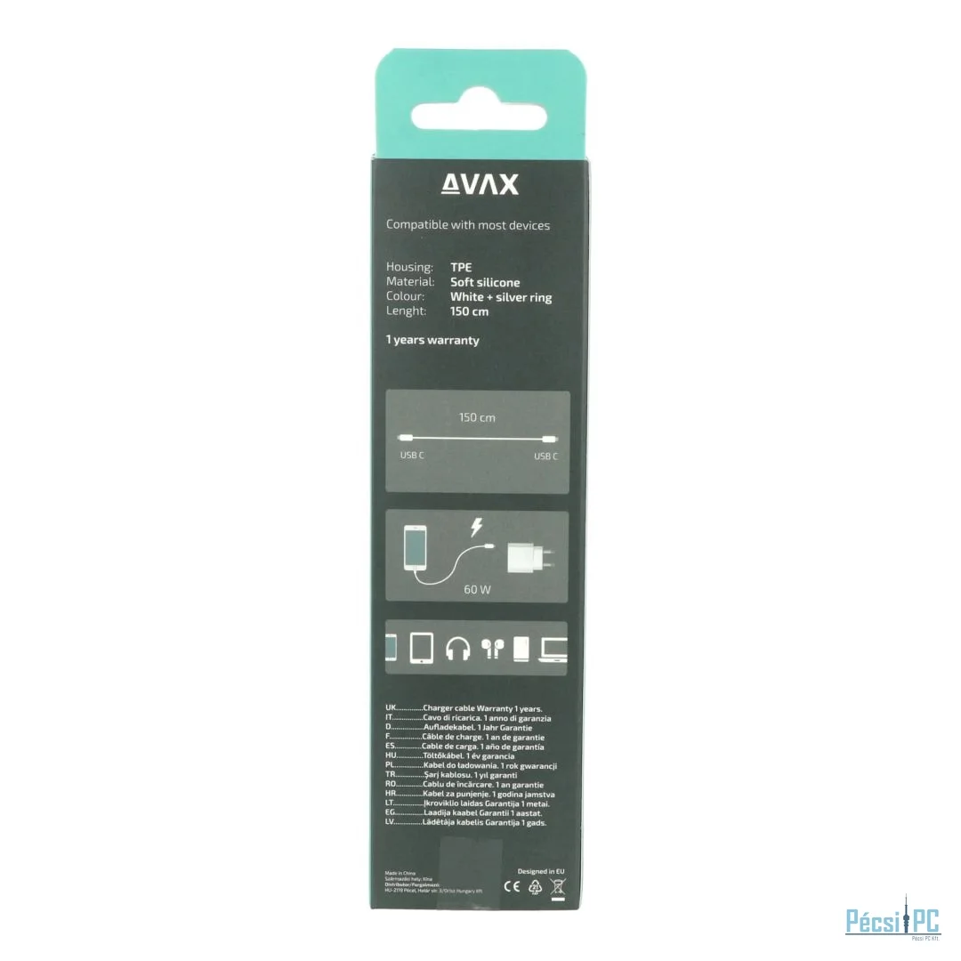 Avax CB623 CREAMY+ USB-C - Type-C cable 1,5m White/Silver