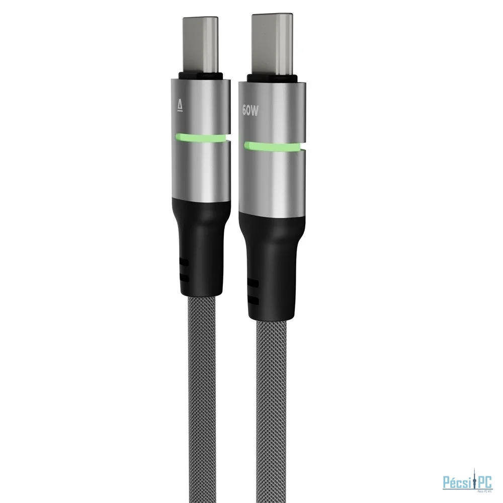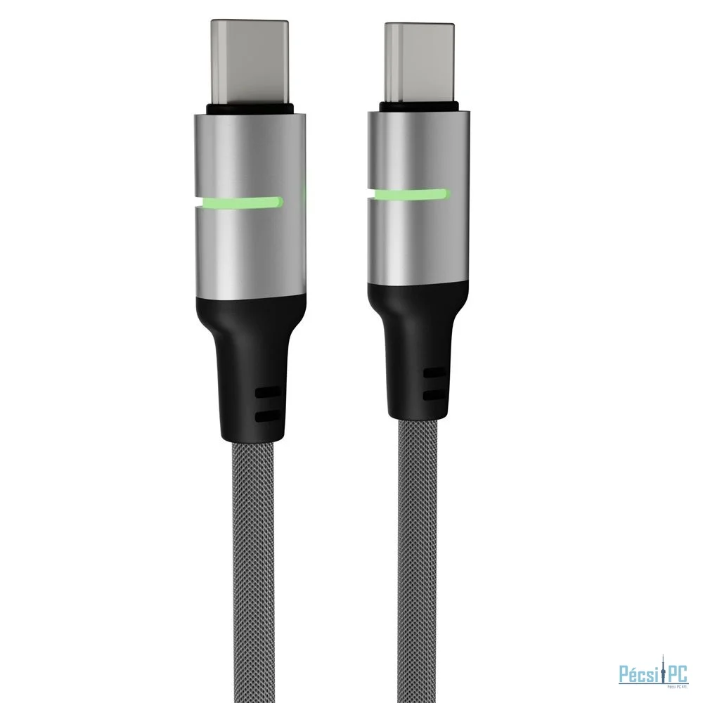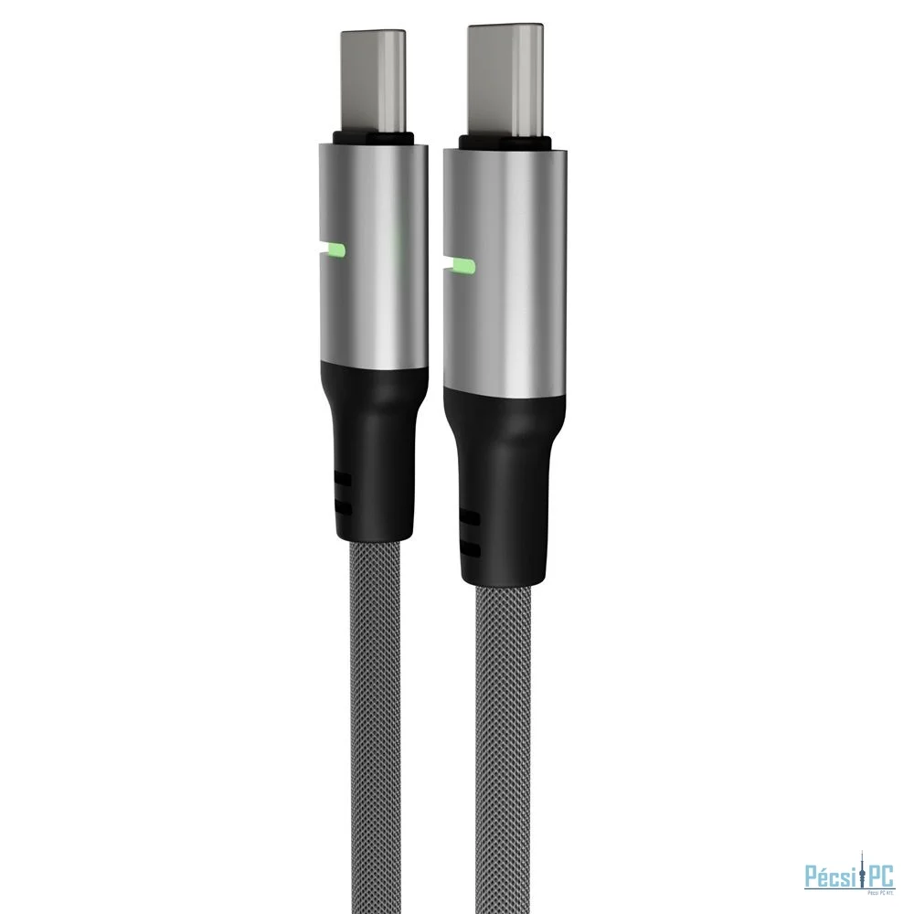 USB kábel, USB-C, USB-C, USB2.0, Male/Male, 3m, Black, Töltő és adatkábel, Szövetborítás