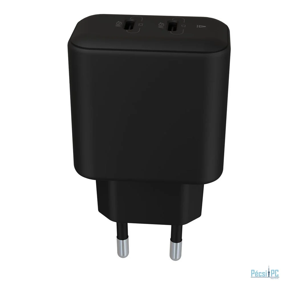 Adapter, 2xUSB-C, 5V/9V/12V/15V/20V, 3A, 20W, PD, Black