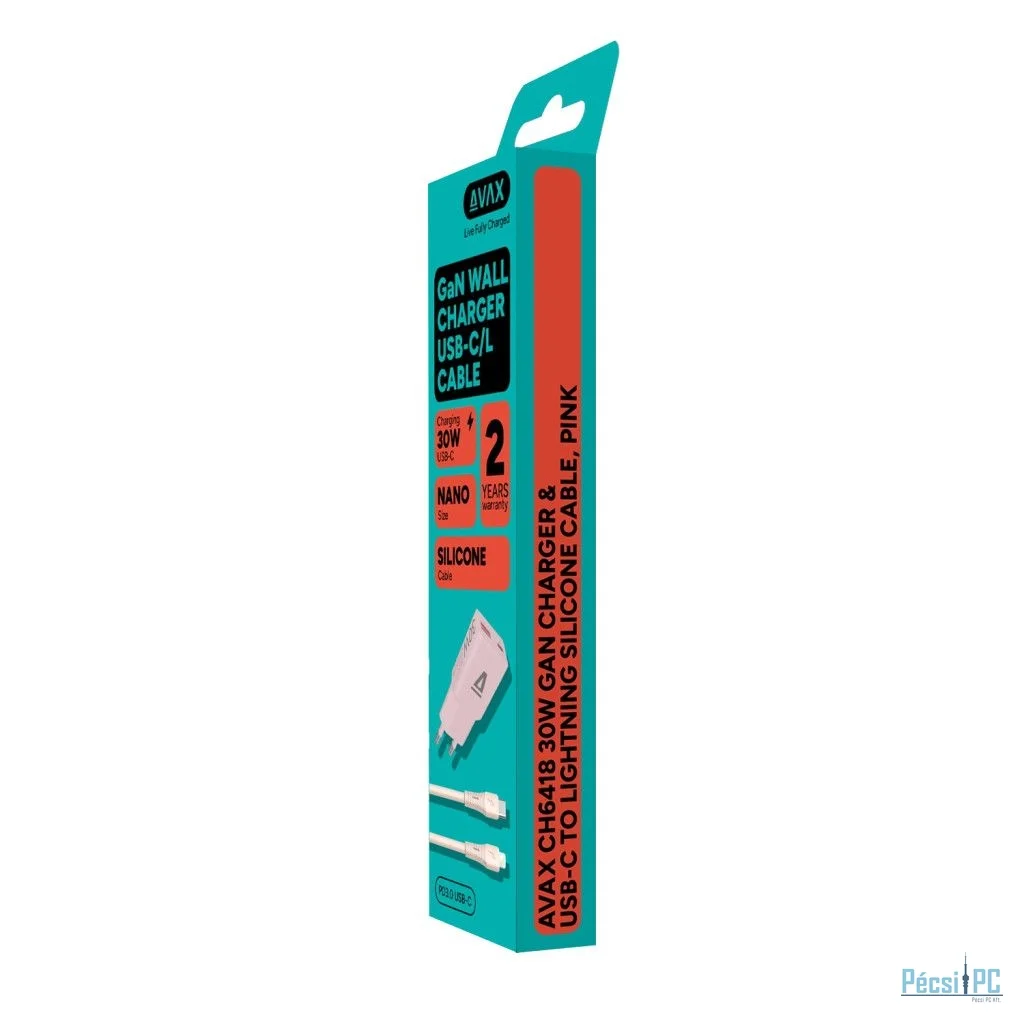 Az AVAX CH6418 töltő és kábel csomag komplett és megbízható megoldást kínál Apple készülékek gyors és biztonságos töltéséhez. A csomag egy 30W GaN USB-C gyorstöltőt és egy USB-C – Lightning szilikon töltőkábelt tartalmaz, így ideális választás otthoni, irodai vagy utazás közbeni használatra.