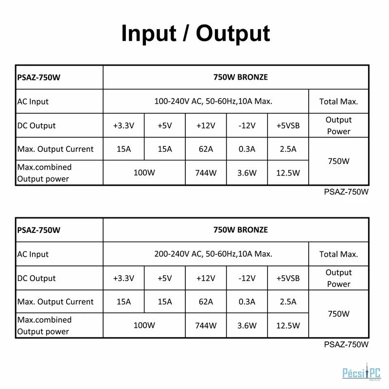 - Gyártói cikkszám: PSAZ-750W ARGB