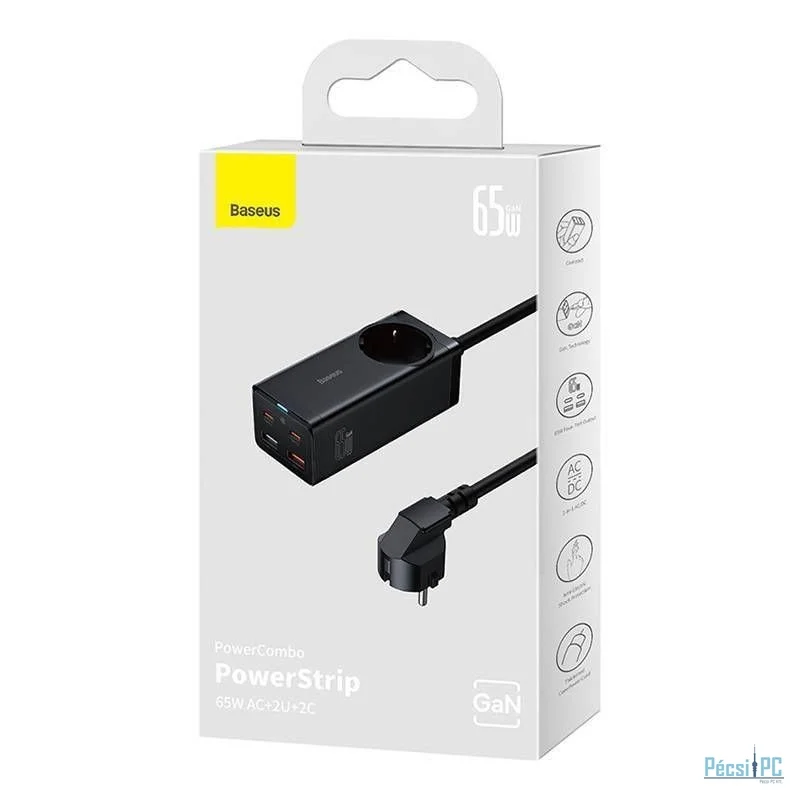 Baseus GaN3 Pro hálózati töltő 2xUSB + 2xUSB-C + AC 65W Black