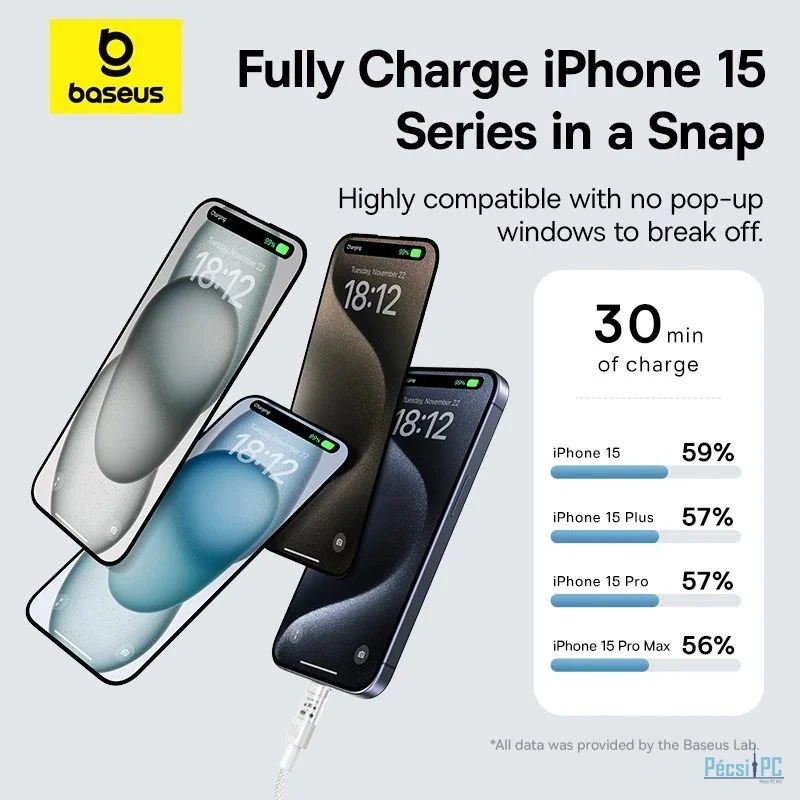 Gyors töltés: Optimalizált 100 W teljesítmény leadására, így ideális az energiaéhes eszközök, például laptopok töltésére.