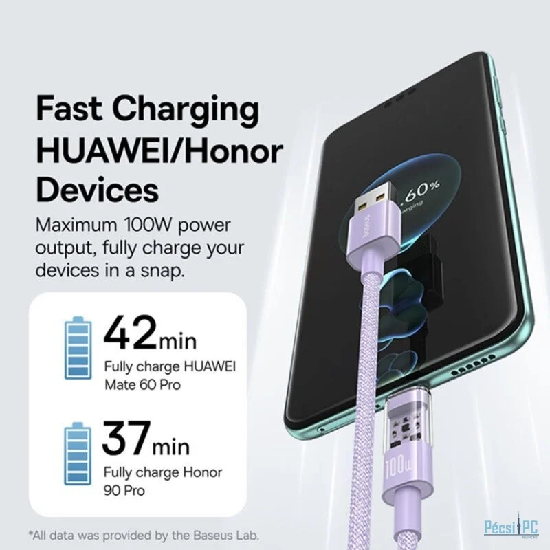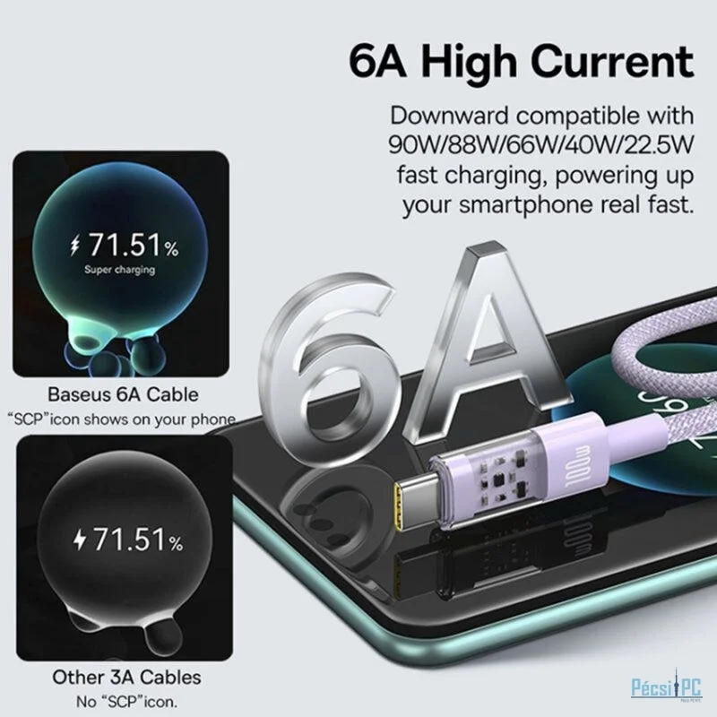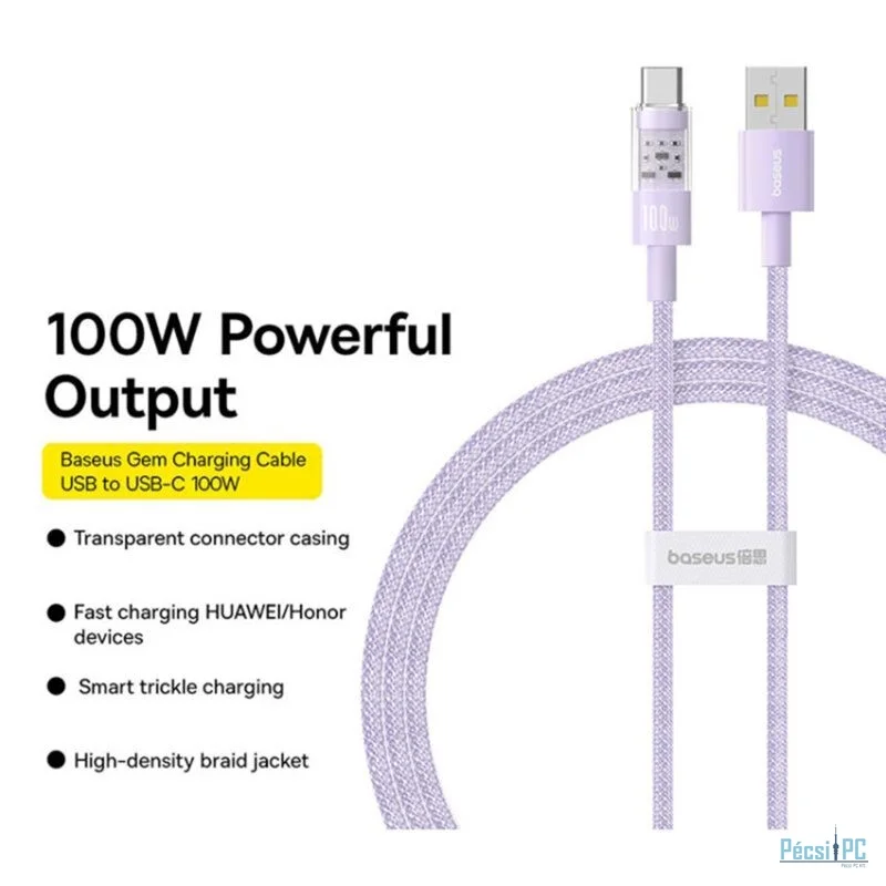 Baseus Gem USB A to USB C 100W fast charging cable 2m Purple
