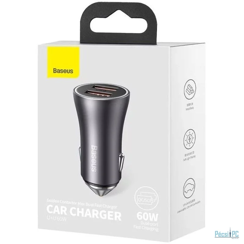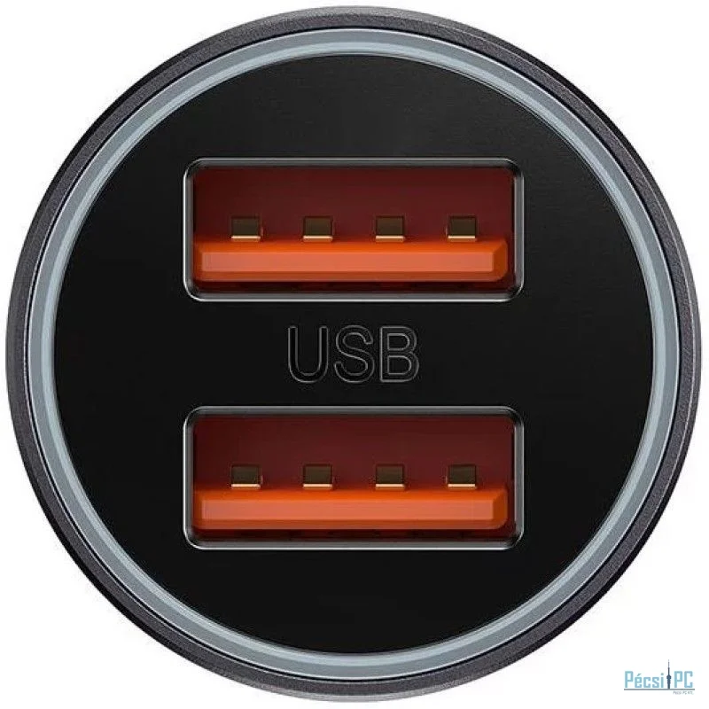 Autós töltő, 2xUSB-A, 30W, QC, Black