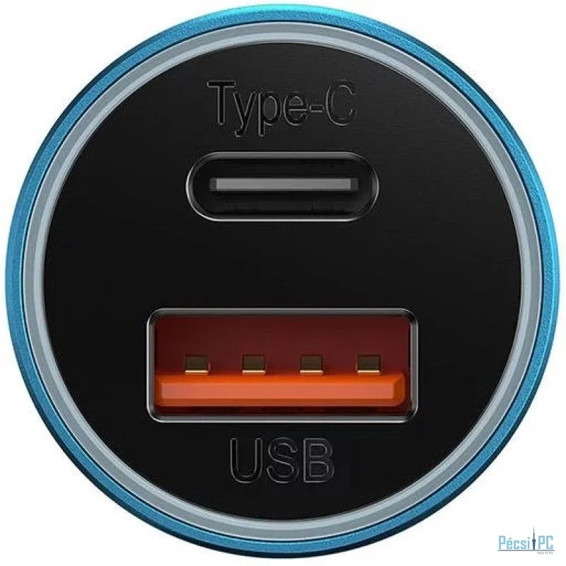 Autós töltő, 1xUSB-A, 1xUSB-C, 5V/9V/10V/12V, 3A, 30W, QC, Blue