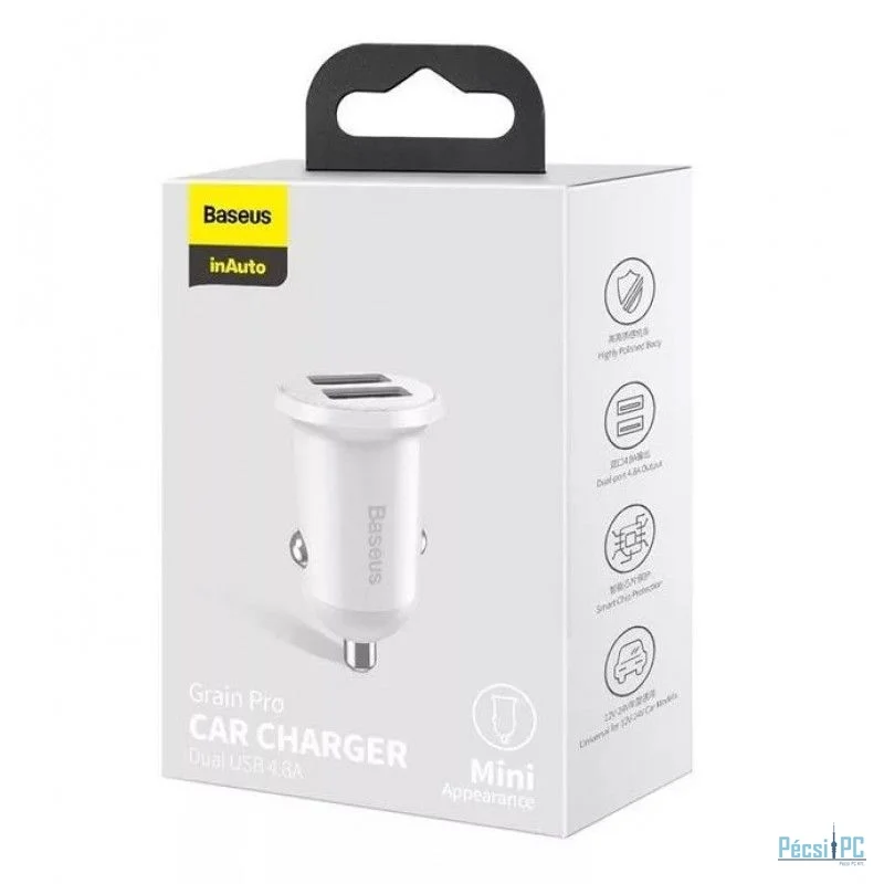 Autós töltő, 2xUSB-A, 12V/24VV, 2,4A, White