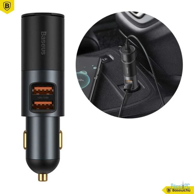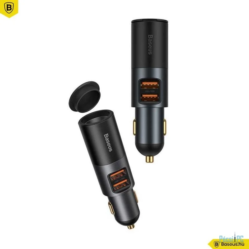 A szivargyújtóval szerelt Baseus autós töltő 2 db USB porttal, valamint egy 60 W-os bővítő porttal van felszerelve, mely lehetővé teszi akár 2 készülék egyidejű gyors töltését, összteljesítménye pedig akár 120W is lehet. A beépített, intelligens chip pedig megvédi a berendezést a sérülésektől. A termék 12V és 24V feszültségű járművekkel kompatibilis. A töltő emellett rendkívül tartós és könnyen használható. Speciális szilikagél borítás pedig védi a portól.