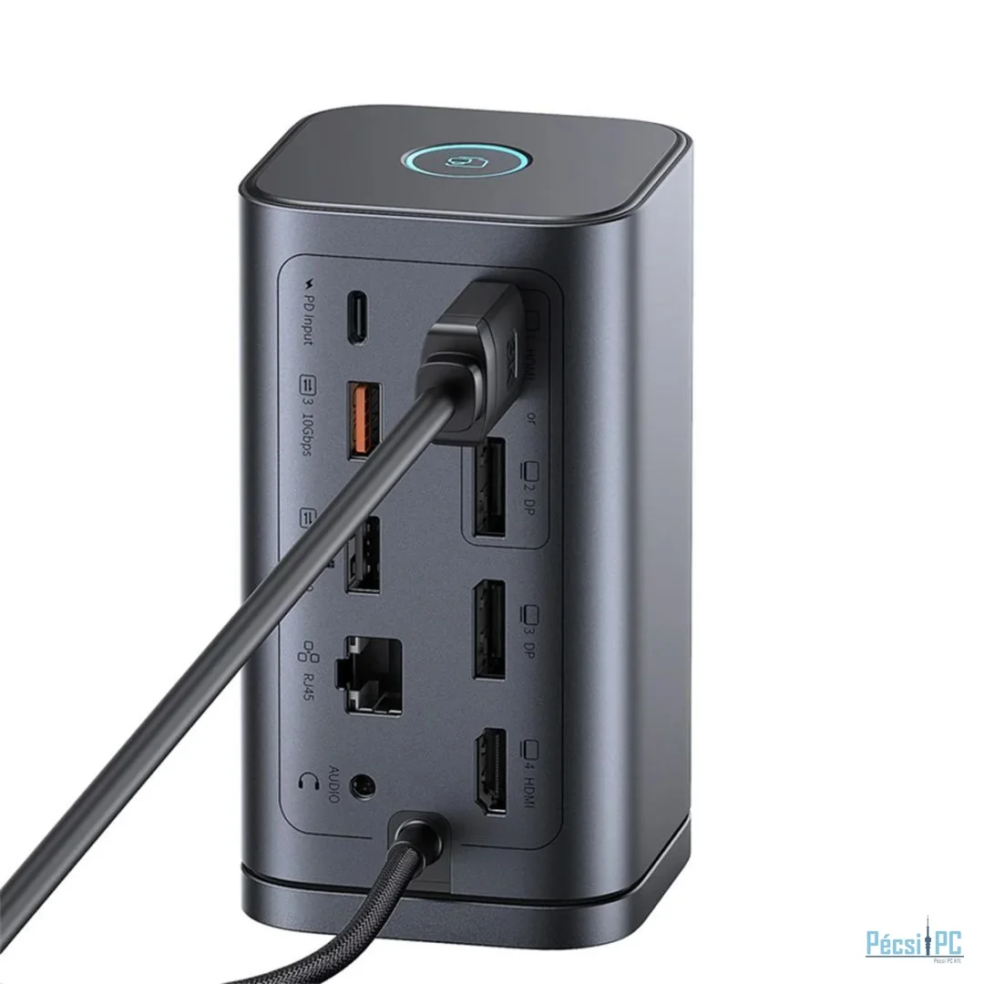 Csatlakozás USB-C, 3xUSB-A, 2xUSB-C, 2xHDMI, 2xDisplayport, RJ45, 3.5mm jack