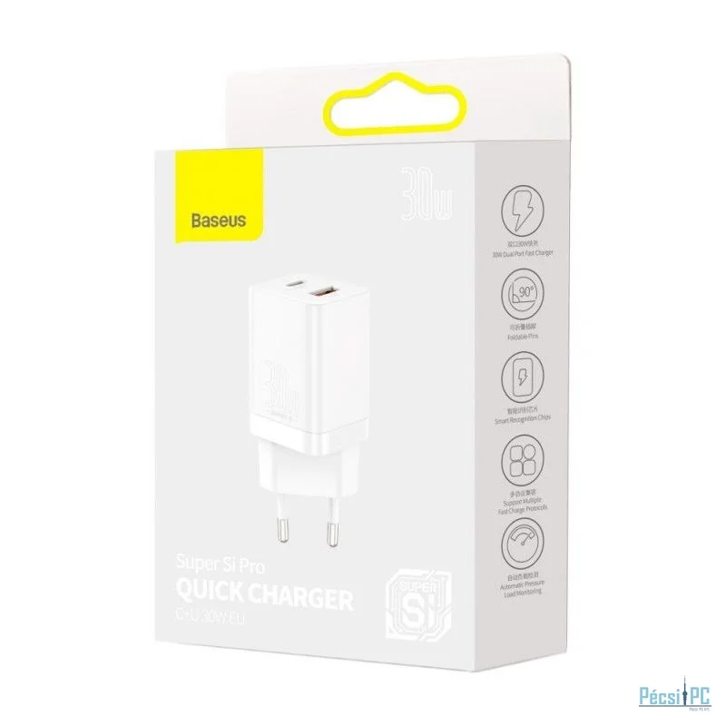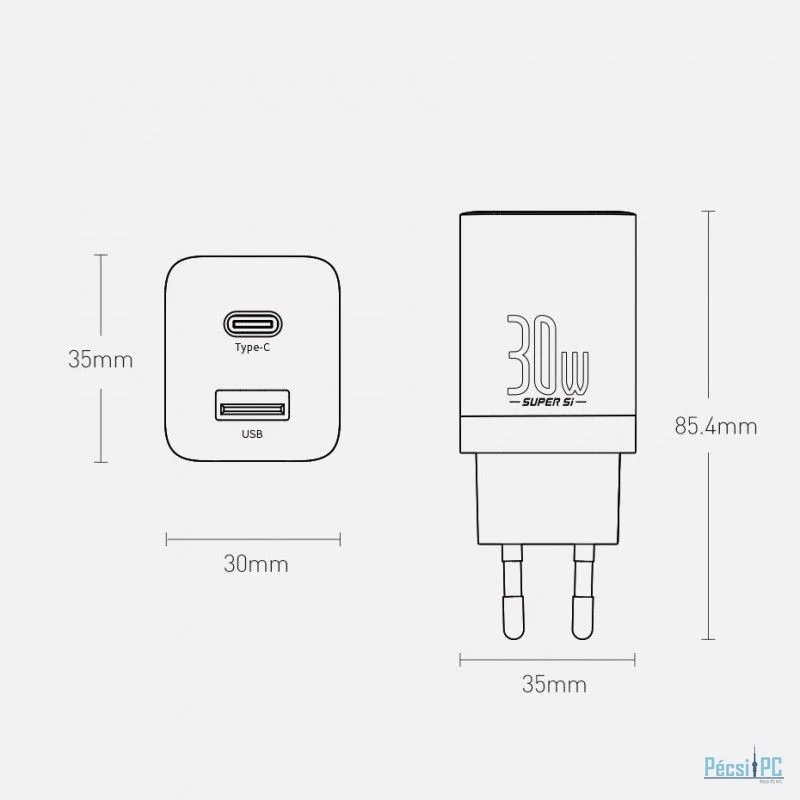 Adapter, 1xUSB-A, 1xUSB-C, 5V/9V/12V/15V/20V, 3A, 30W, QC, PD, White