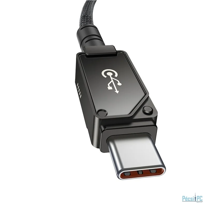 USB kábel, USB-C, Lightning, USB2.0, Male/Male, 1m, Black, Töltő és adatkábel, Szövetborítás