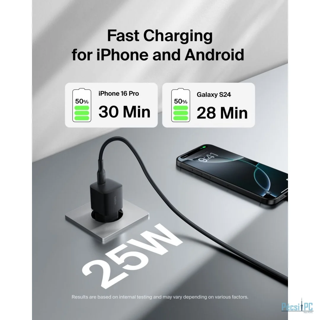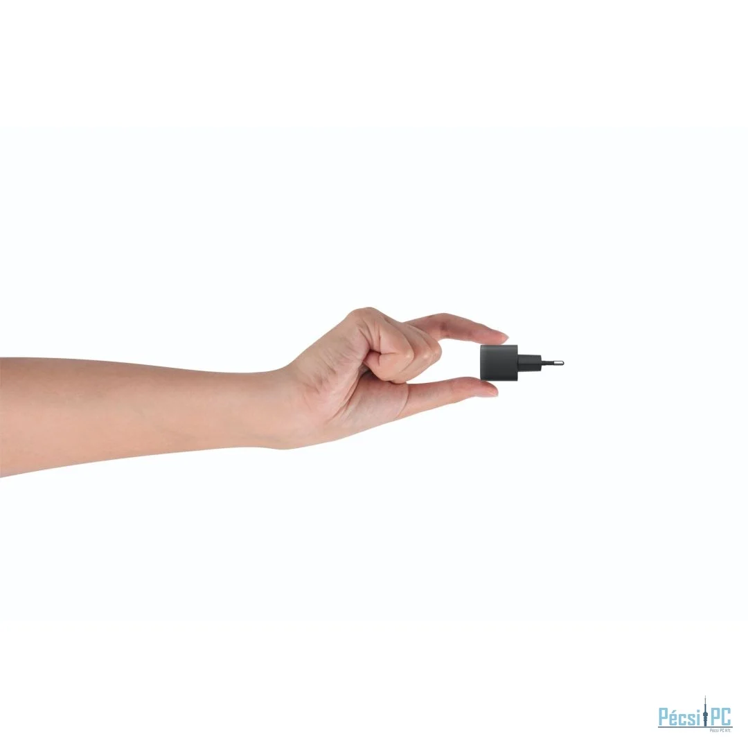 Hálózati töltő, 1xUSB-C, Kábel csatlakozó USB-C , 3V/5V/9VV, 2,77A, 25W, PD, Black