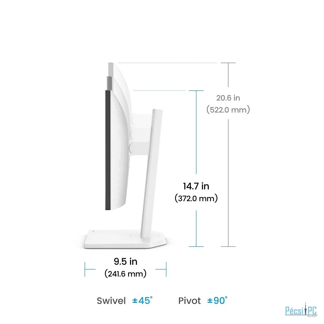16:9, 1920x1080, 23,8", Full HD, LED, IPS, 144Hz, 5ms, 1500:1, 250cd/m2, DP, 1xHDMI, 1xUSB-C, Hangszóró, FreeSync, White, Állítható magasság, Pivot