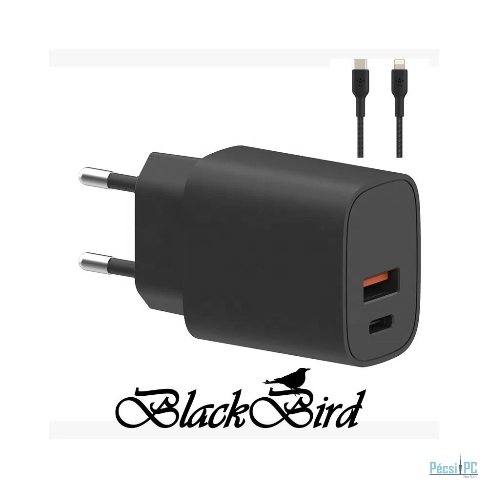 BlackBird T131 Hálózati Adapter + Lightning kábel 1m Black