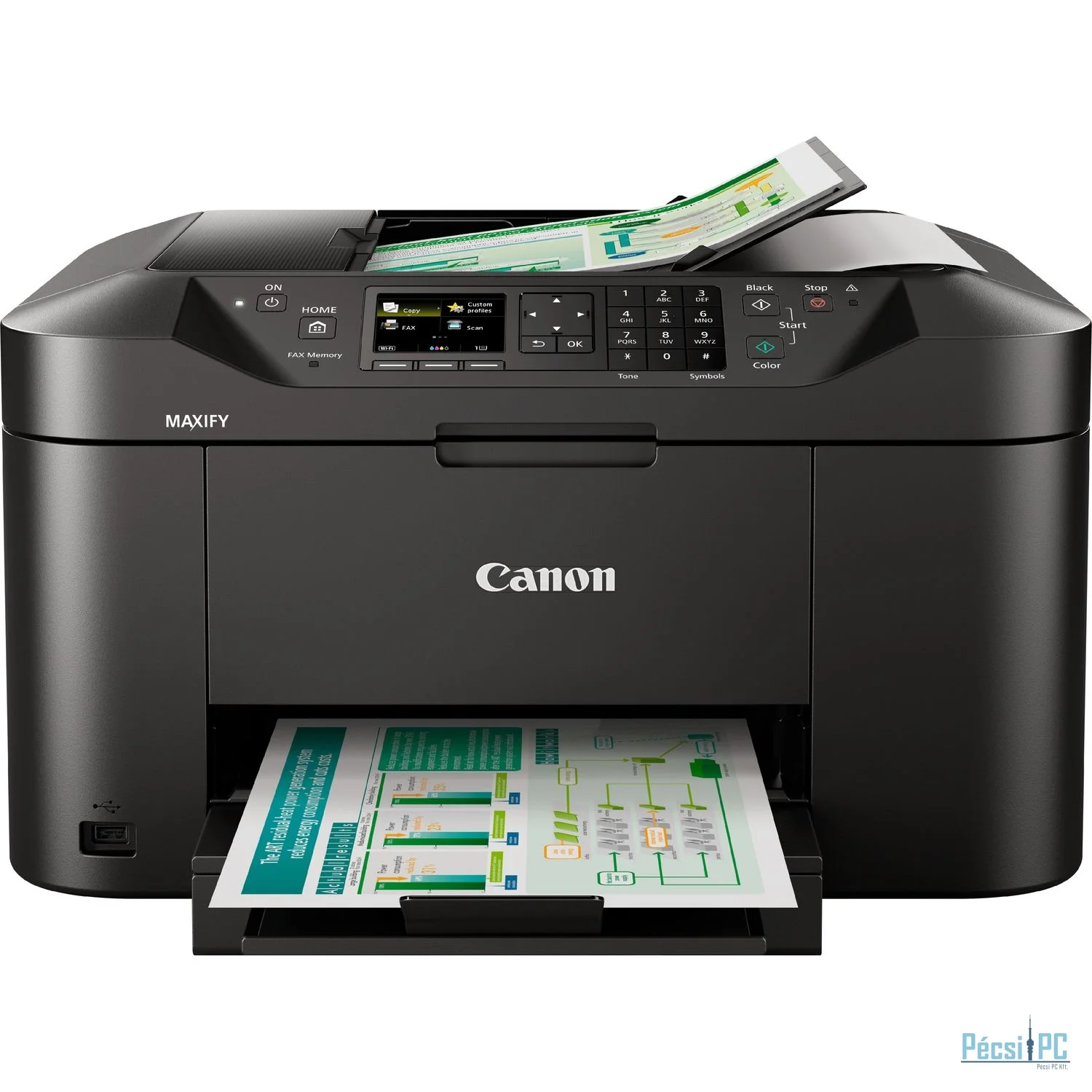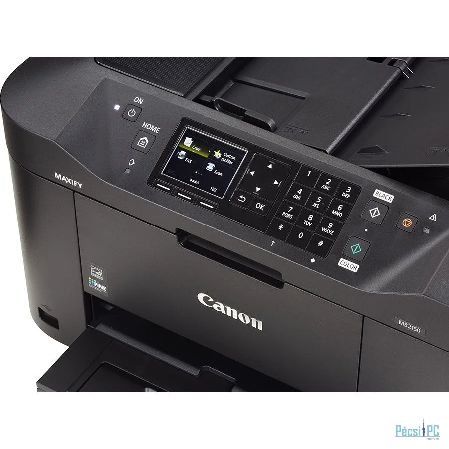 Sokoldalú nyomtató, szkenner, másoló és fax olyan otthoni irodák számára, amelyeknek remek fekete-fehér és színes nyomtatási minőségre és alacsony oldalankénti költségre van szükségük. A 250 lapos nagy méretű adagolóval és 50 lapos automatikus dokumentumadagolóval rendelkező Canon MAXIFY MB2150 sorozat a kihúzás- és súrlódásálló DRHD tintáknak köszönhetően kimagasló nyomatokat produkál élénk színekkel és éles szövegekkel. A Canon MAXIFY MB2150 sorozat gyors, 19 kép/perces fekete-fehér és 13 kép/perces színes A4-es nyomtatásra képes, az első nyomat pedig mindössze 6 másodperc alatt elkészül (FPOT).