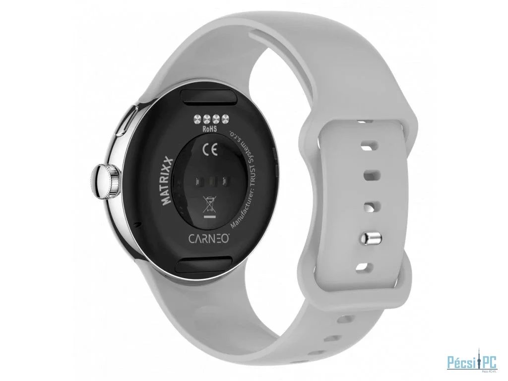 Az elegáns ezüst kivitelezésű, modern fitnesz-okosóra Carneo Matrixx HR+ kerek Super HD AMOLED színes kijelzővel rendelkezik. Képes a pulzusszám, a stressz, a BMI, a megtett távolság mérésére, nyomon követi az elégetett kalóriákat és az alvás minőségét. 260mAh-s akkumulátora 3-5 napos üzemidőt biztosít. Kompatibilis az iOS és az Android rendszerrel. Az óra kellemes tapintású, szilikon szíjjal rendelkezik, amely más színű szíjra cserélhető, és így a megjelenés az öltözékhez igazítható. Az ízléses, egyszerű és fényűző kialakítás könnyen kombinálható öltönyhöz vagy alkalmi öltözékhez. Az óra és az alkalmazás is teljesen magyar nyelvű, így biztosan kijöttök majd.
