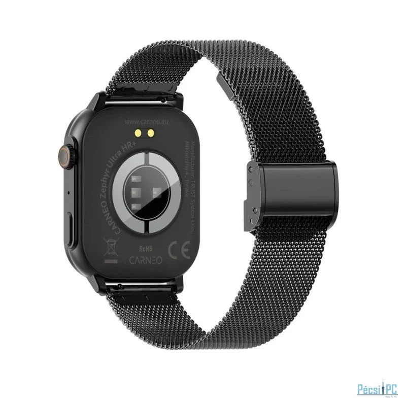 A modern, kültéri fitnesz okosóra Carneo Zephyr Ultra HR+ elegáns fekete színben négyzet alakú SUPER AMOLED színes kijelzővel rendelkezik, amelyet edzett, ásványi üveg véd. Méri a pulzusszámot, a stresszt, a BMI-t, a megtett távolságot, nyomon követi az elégetett kalóriákat és az alvás minőségét. 280mAh-s akkumulátort tartalmaz, 5-7 napos üzemidővel. IP67 tanúsítvánnyal rendelkezik, így víz- és porálló. Kompatibilis az iOS és az Android rendszerrel. Az órához egy kellemes tapintású fekete színű szilikon szíj tartozik, amely sportos megjelenést kölcsönöz az órának. Az ízléses outdoor-luxus kialakítás könnyen kombinálható öltönnyel vagy szabadidőruhával. Az óra és az alkalmazás is teljesen magyar nyelvű, így biztosan jól kijöttök majd egymással.