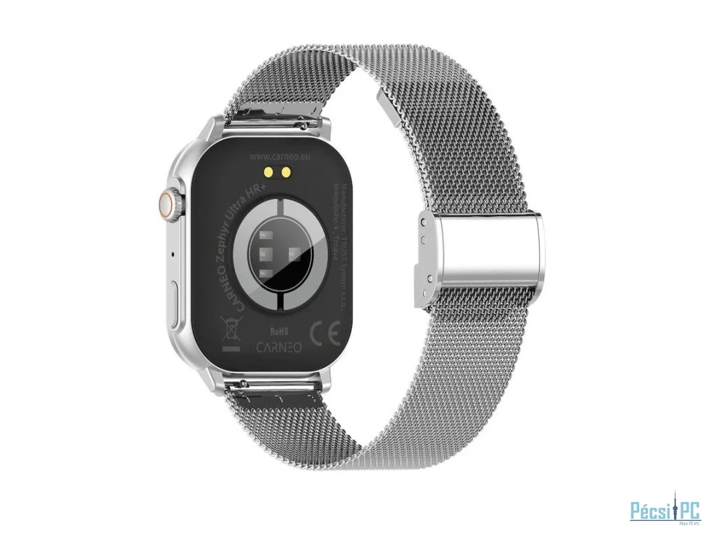 A modern, kültéri fitnesz okosóra Carneo Zephyr Ultra HR+ elegáns fekete színben négyzet alakú SUPER AMOLED színes kijelzővel rendelkezik, amelyet edzett, ásványi üveg véd. Méri a pulzusszámot, a stresszt, a BMI-t, a megtett távolságot, nyomon követi az elégetett kalóriákat és az alvás minőségét. 280mAh-s akkumulátort tartalmaz, 5-7 napos üzemidővel. IP67 tanúsítvánnyal rendelkezik, így víz- és porálló. Kompatibilis az iOS és az Android rendszerrel. Az órához egy kellemes tapintású fekete színű szilikon szíj tartozik, amely sportos megjelenést kölcsönöz az órának. Az ízléses outdoor-luxus kialakítás könnyen kombinálható öltönnyel vagy szabadidőruhával. Az óra és az alkalmazás is teljesen magyar nyelvű, így biztosan jól kijöttök majd egymással.